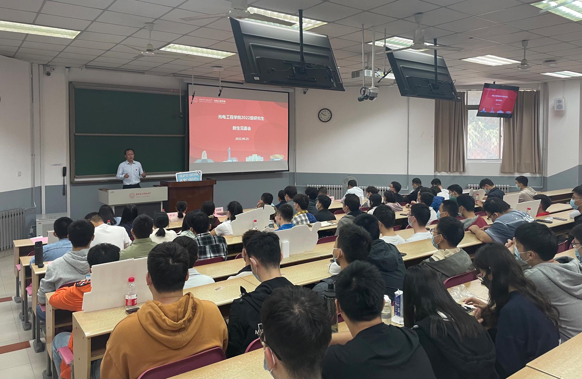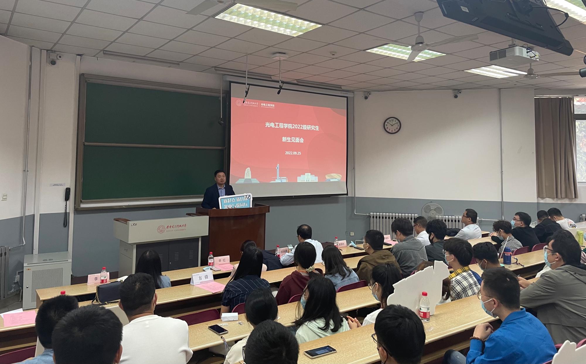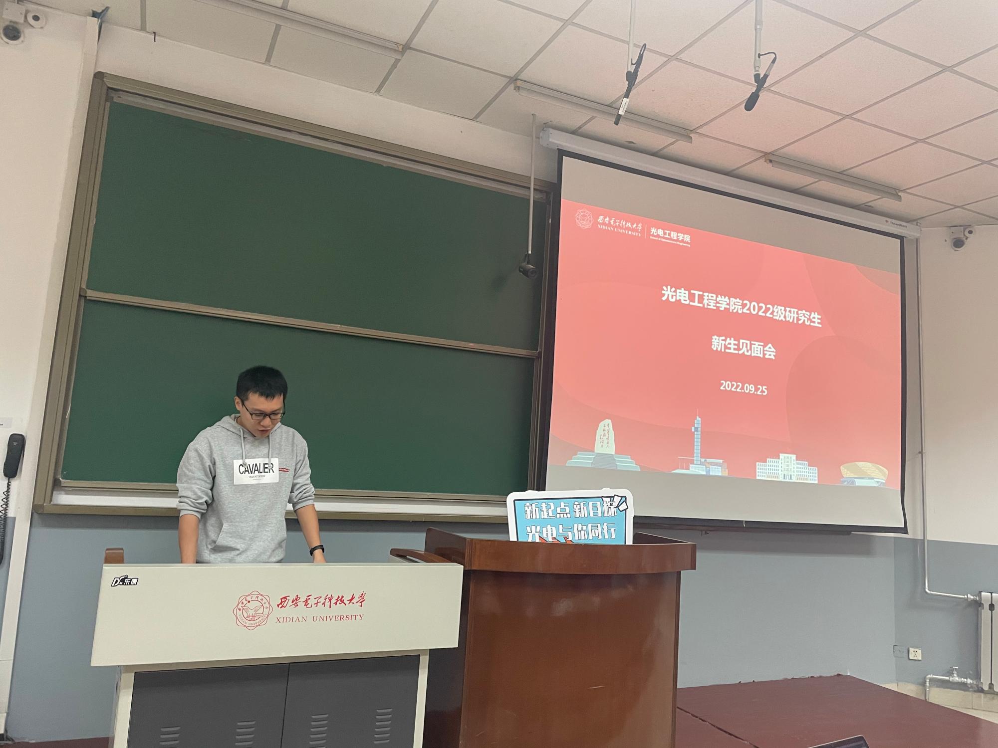 于北校区J-110分会场集中观看西安电子科技大学2022级新生开学典礼,举办学院研究生新生见面会。学院领导班子、研究生教务干事、辅导员和全体新生参加。见面会由学院党委副书记李洁主持。