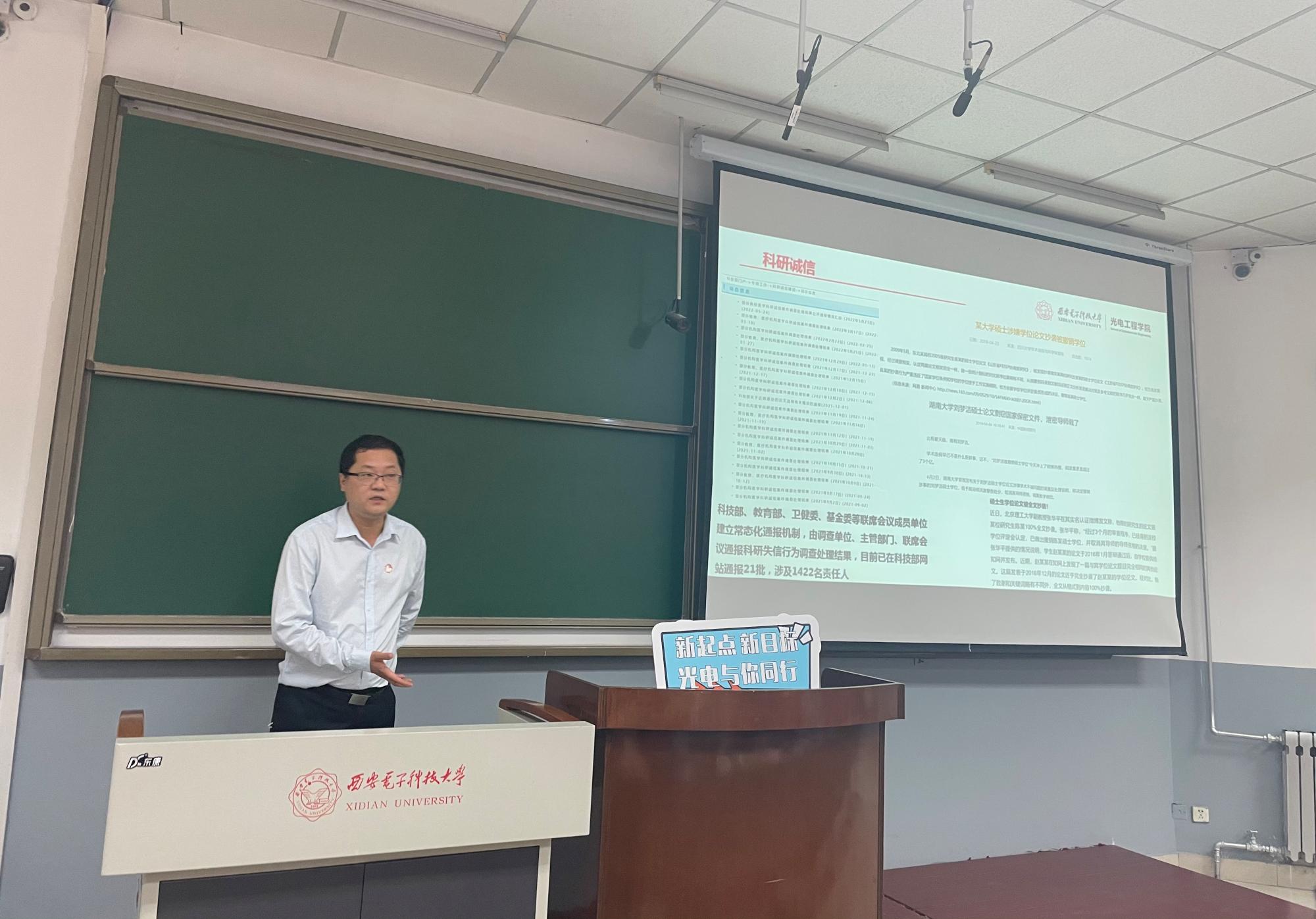 秦翰林教授对科研诚信、保密教育、实验室安全等相关制度、要求进行了说明,提醒同学们杜绝学术不端、遵守保密规定、自觉维护实验室安全。22级新生代表赵子涵回顾与学院共同成长的四年,他表示,作为新时代西电人,同学们要走出舒适区,以“务实”的态度去尝试和摸索,与祖国同命运、与西电共成长。