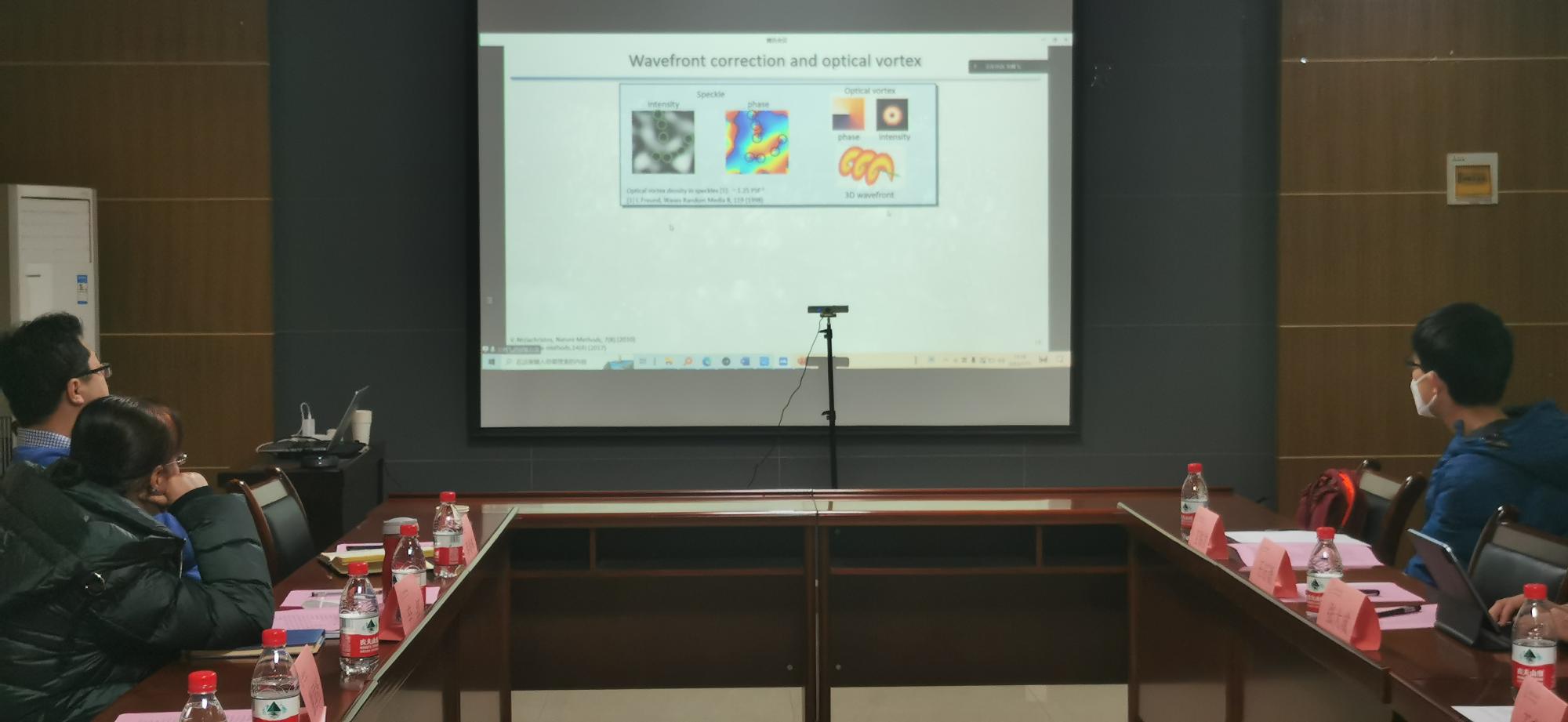 法国巴黎高等师范学院访问学者朱磊博士、法国国家科学研究中心吴腾飞博士、学院新入职教师卫临方博士3位青年学者分别作了题为Large field-of-view non-invasive imaging through scattering layers using fluctuating random illumination,Wave-front sensing with a thin diffuser及Accurate Resonance Computation Method Applied to Various Neutron Spectra的专题报告。与会学者就光学工程学科相关领域前沿、热点话题展开了热烈讨论。清水孝一教授分享了来校工作的经历与感受,并表示愿意为海内外优秀青年学者来学院发展提供力所能及的指导和帮助。
