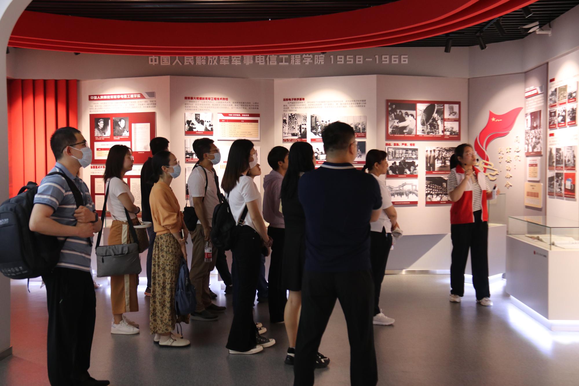 在校史馆,教师们以学校建立及发展的历史进程依次参观了“俯垂明训”“校史钩沉”“今日华章”等三大篇章,沉浸在从江西瑞金军委无线电学校到西安电子科技大学的峥嵘岁月回顾中,领会到了学校“全心全意为人民服务”的办学宗旨,更加深刻感悟到我校在艰苦伟大的时代,历经二万五千里长征,多次转战南北兴教办学,九十余年来与党和国家同心同德、风雨同舟,征程中奋勇作为的壮丽篇章。