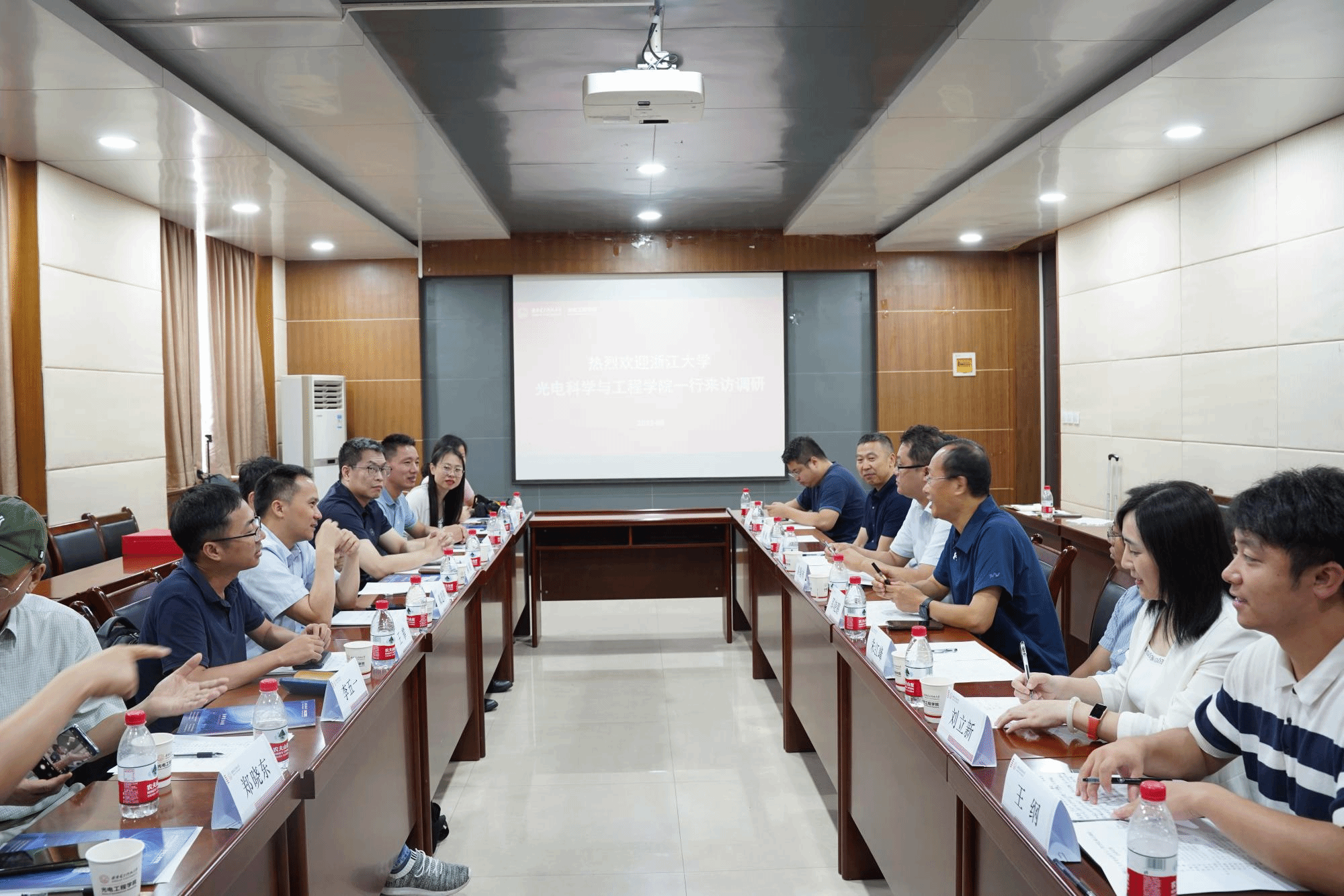 8月11日上午,浙江大学光电科学与工程学院院长戴道锌、校友分会会长李五一、副院长郝翔等一行9人来访调研,院长邵晓鹏、副院长秦翰林、系(所、中心)主任、科研团队负责人等参与座谈。