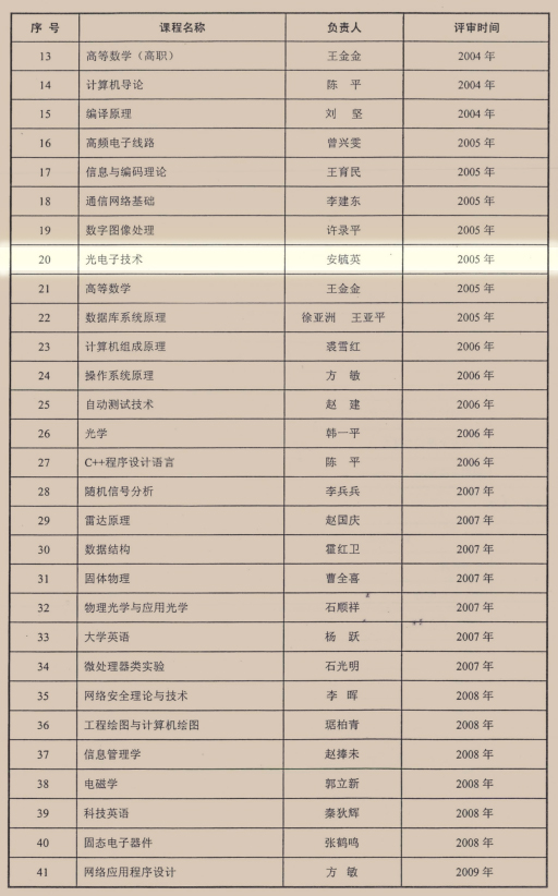 光电子技术被评为省级精品课(西电档案馆馆藏)