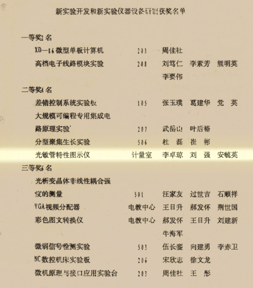 1996年安毓英教授等在新实验开发和新实验仪器研制中获二等奖(西电档案馆馆藏)