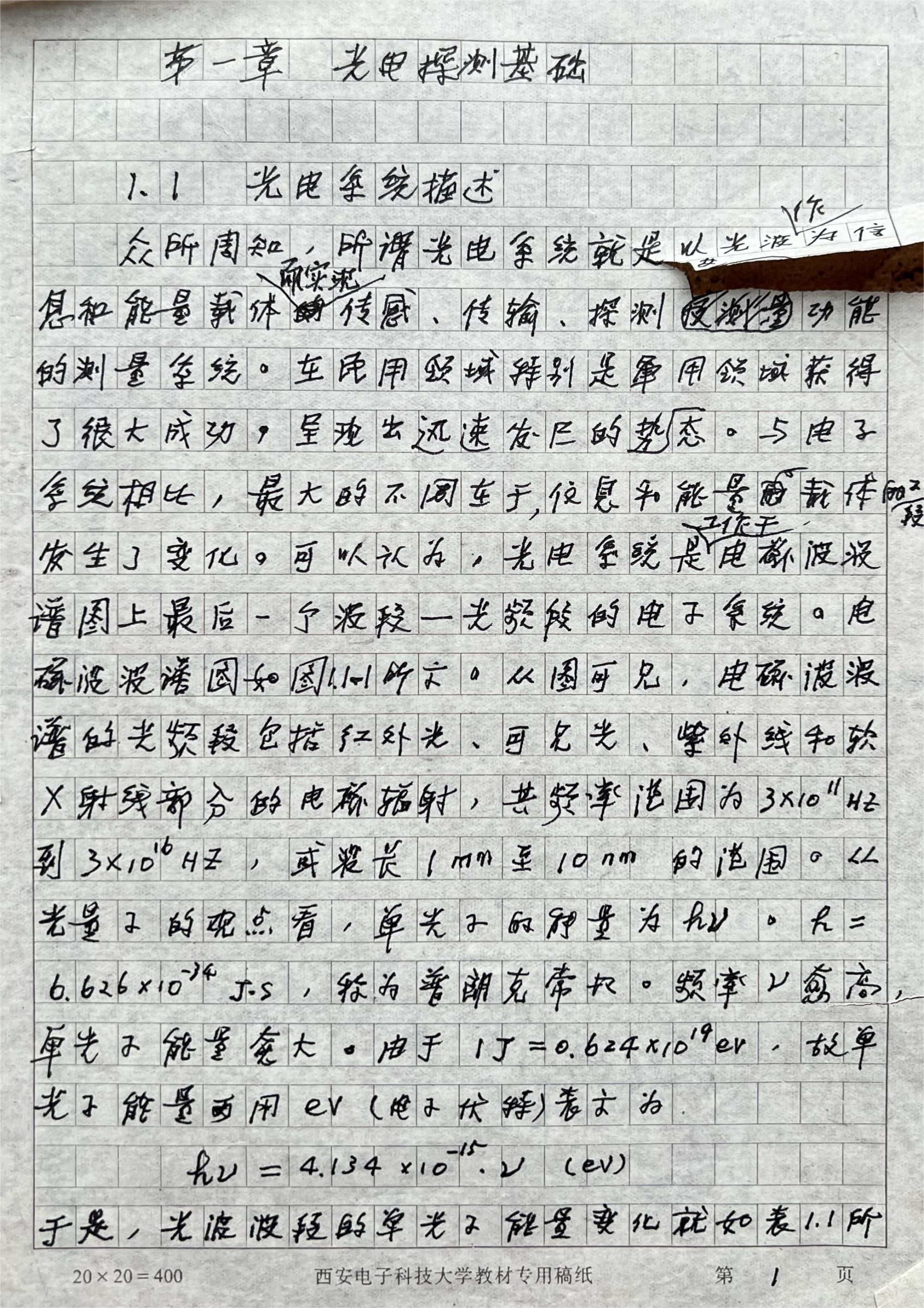 “当时,我就想,这本教材它既要有扎实的基础知识,还要有先进性,也不能太厚。在这部分我动了很多脑筋,先列好大纲,然后确定主题。” 安教授回忆道,框架搭好后,他就联合激光技术专业的刘继芳教授、红外技术专业的李庆辉教授一起开始着手这本教材的编写,每个人写自己最擅长的部分。