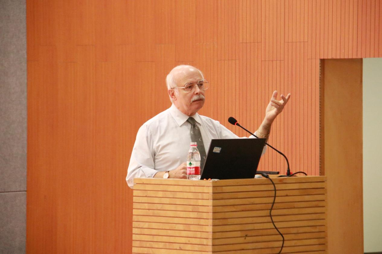 Andreas Mandelis教授以基础的光谱开篇,由高能量、短波长的伽马射线到低能量、长波长的无线电波,引导学生进入电磁辐射的世界。之后,Andreas Mandelis教授进一步深入探究,为学生提供了有关量子力学的基础知识:由普朗克提出的辐射能量不连续的观点,分立能级的观点,爱因斯坦的光量子假设等,为学生接受后续的知识奠定基础。Andreas Mandelis教授继而提出物理学中的两个极为重要的定律:Kirchhoff’s Law of Thermal Radiation以及Stefan-Boltzmann Law。前一定律揭示了任何物体在发出辐射能的同时,也在不断吸收周围物体发出的辐射能的一般规律,后一定律则进一步量化指出,黑体的辐射能力与其热力学温度的四次方成正比。Andreas Mandelis教授给出了一些基于这两条定律的应用实例:利用人体辐射测量人体温度、利用辐射能加热物体、利用物体热辐射进行热成像等。基于以上知识,Andreas Mandelis教授重点介绍了热成像技术的相关知识。Andreas Mandelis教授具体介绍了热成像探测器的原理与应用,同时进一步介绍了锁相热成像物理原理与技术、信号分析处理方法,包括离散傅里叶变换等方法,讲解了LIT实验装置,从理论推导以及实践操作两方面为学生展示了热成像技术的全景。