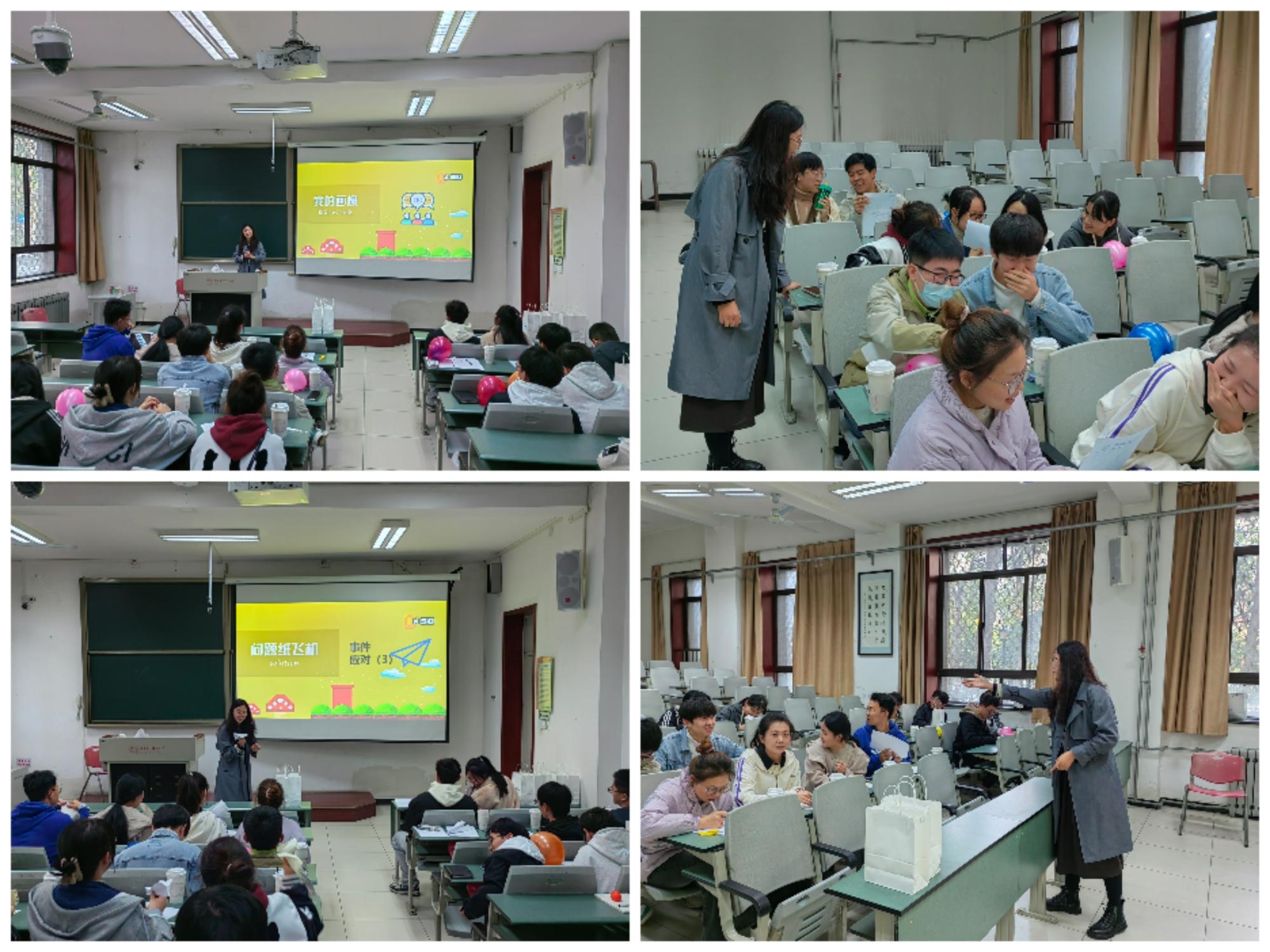 邀请学校心理健康教育中心副教授张文娟、讲师王雪微分别在北校区西大楼三区412会议室和一区105教室开展了“遇见未知的自己—情愿卡体验”团体辅导和“从bug到buff—压力调试与管理”主题活动,学院40余名研究生参与了心理辅导系列活动。