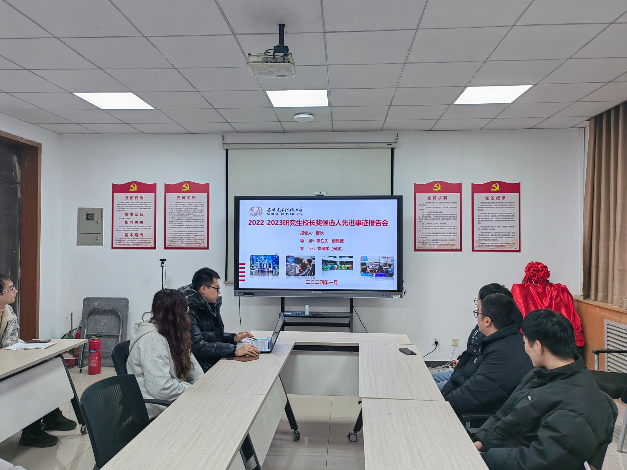 高度重视研究生思想政治教育和学风建设工作,经验分享交流会上,同学们分享科研成长经历、交流学术经验,并围绕“教育强国、西电何为”进行了讨论,表示将努力学习、勤奋工作,不断提高自身素质和能力,坚定了科技报国、教育强国的信心与决心。会后学院就研究生寒假教育管理工作进行了说明。