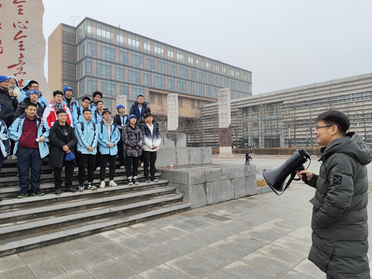 的凌进中老师、李维嘉老师对前来研学的同学们表示了诚挚的欢迎,说明了研学游的安排并鼓励中学生们在持之以恒的学习后报考我校。