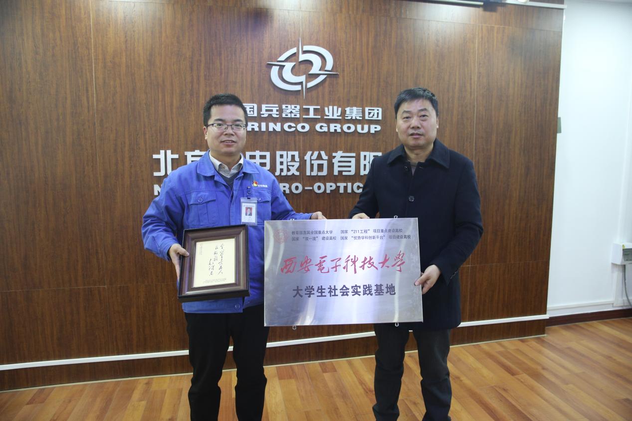 在交流环节,曹双喜表示希望双方以人才招聘和培养为切入点,对接供需并开展多层面、多角度、多点位的合作交流,积极探索院企合作创新模式,同时希望更多西电优秀毕业生加入北方光电股份有限公司。独国社表示希望充分发挥双方专业、人才、资源等优势,通过项目合作、技术交流和人才培养等方式建立常态化互动交流机制,深化产学研合作。随后,西电校友、北方光电股份有限公司工作人员分享了工作经历和感悟,并对现场同学的疑惑一一解答,为同学们提供了成长发展与择业就业的宝贵建议,同学们增加了对专业实践的认知,也对公司人才驱动科技创新的理念、科研工作者代际传承的工匠精神有了更深的感悟与体会。最后,独国社、高军共同为“大学生社会实践基地”挂牌。