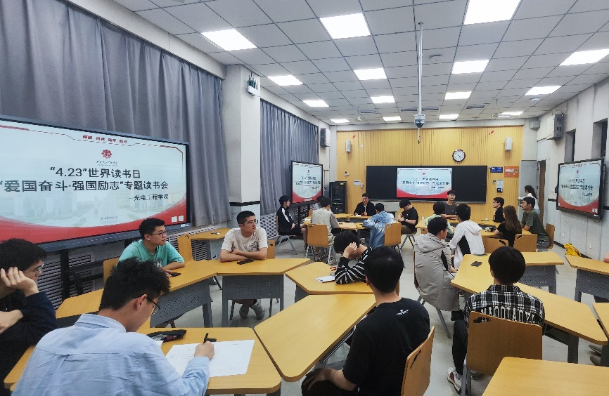 在C131教室举办“爱国奋斗·强国励志”主题读书会,辅导员马力及20余名本科生参加。