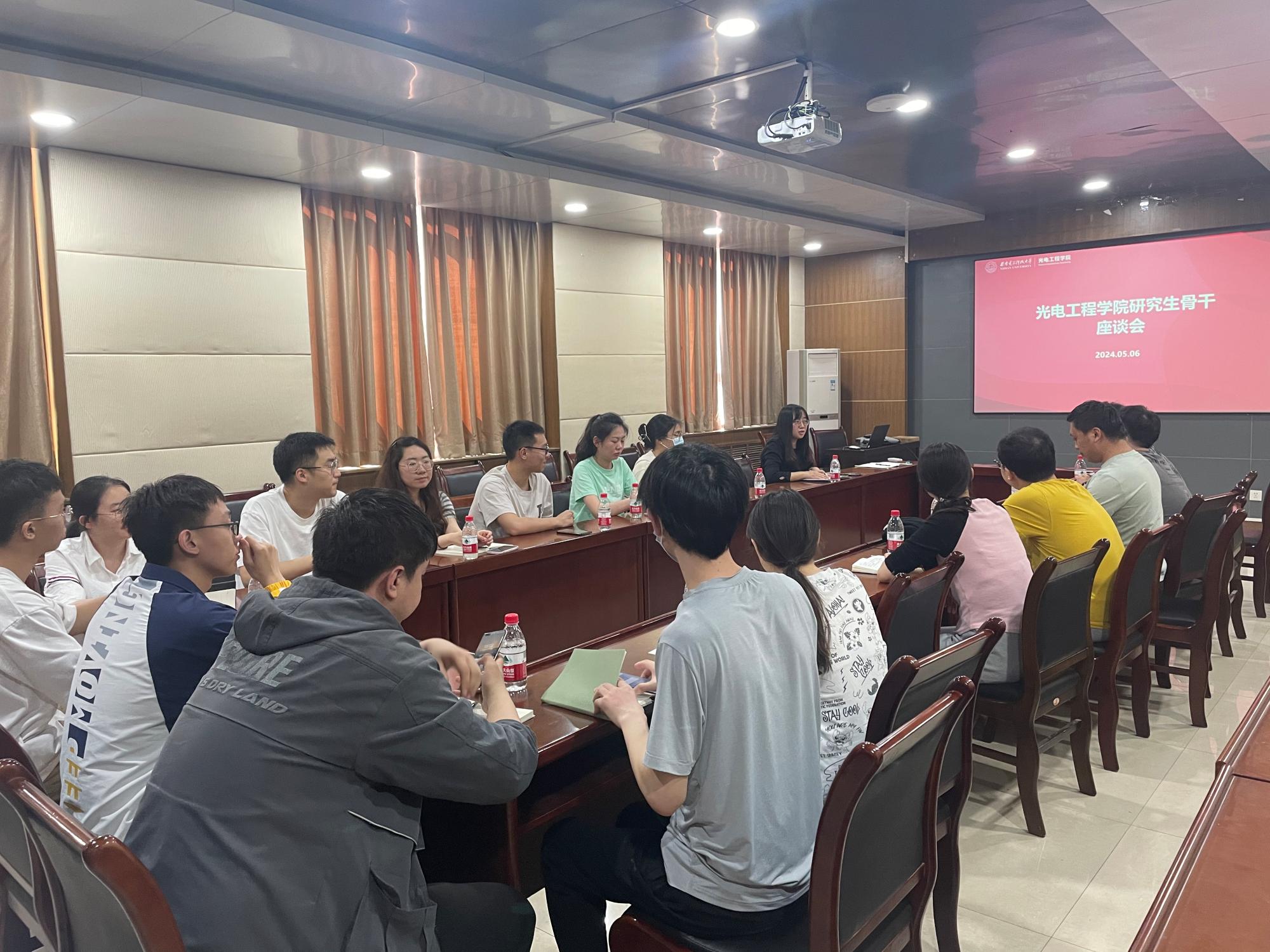 在研究生骨干座谈会上,硕博研究生班长、党支部书记、组长等学生代表分享了在校期间的学习和生活体会,并从课程设置、研究生培养、毕业流程、就业指导、后勤保障、文体活动等方面提出了意见建议。学院认真听取了学生代表的发言,并对反映的问题进行逐一解答,表示将积极回应大家关切的问题,解决同学们的实际困难,努力为同学们营造良好的成长环境。李洁对学生骨干的付出表示感谢,鼓励同学们树立崇高理想,培养全面发展和身心健康的生活方式,做好个人职业规划,积极投身国家建设。同时希望同学们发挥学生骨干带头作用和党员先锋模范作用,当好学院和同学们之间沟通交流的桥梁,加强班级建设,共同维护校园安全稳定。