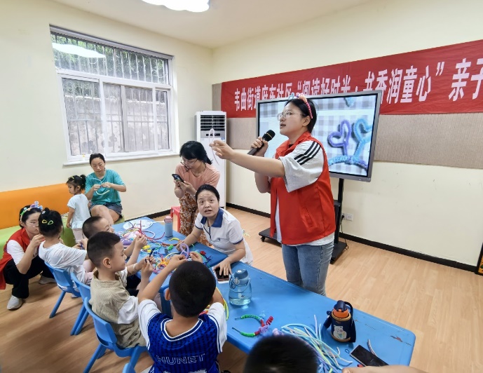 2105013、2205013班团支部的10名同学走进长安区韦曲街道府东社区,开展了一场“光华创意,扭出精彩”心理健康主题活动,本次活动旨在激发小朋友们的创造力和想象力,传递创意与快乐的价值。