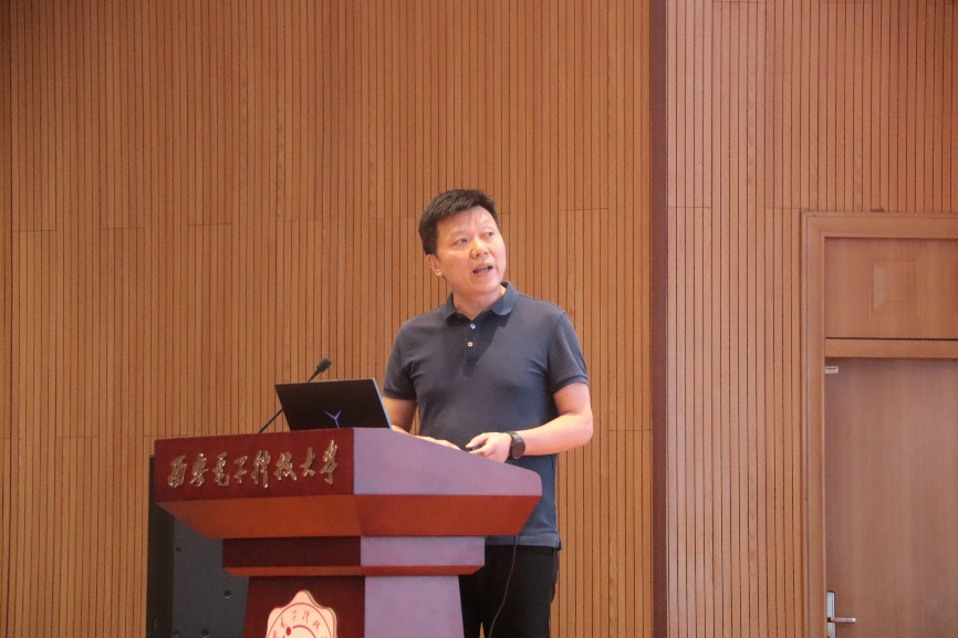 “王聪会19岁走上了工作岗位;20岁,学会了五轴数控机床操作与编程;26岁,在部级职业技能大赛中取得第一名;34岁,领办王聪会陕西省加工中心技能大师工作室;36岁,成为全国技术能手;37岁,成为三秦工匠和西安工匠……”在观看完《劳动人民 最美模范》视频短片后,王聪会以《爱国敬业 匠心铸剑》为题开讲。他首先领学了“把一切献给党”和 “自力更生、艰苦奋斗、开拓进取、无私奉献”的人民兵工精神,并表示人民兵工精神是人民兵工的红色基因,是“中国兵工之魂”,是党的伟大精神之一。“为服务新域新质需求、实现提质降本增效,我和团队开发掌握了次镜面成型加工法、王聪会在线测量、钛合金高效铣削法……等绝技绝活”,他结合个人成长经历分享了在西安应用光学研究所“从零开始”的奋斗历程,讲述十多年来在数控操作方面的经验与故事。最后,王聪会勉励在场青年学子,要深刻理解社会主义核心价值观,涵养家国情怀、坚定文化自信,夯实学业基础、养成良好习惯、关注行业发展,以实际行动弘扬和践行劳模精神、劳动精神、工匠精神,将青春梦想融入中华民族伟大复兴的中国梦。
