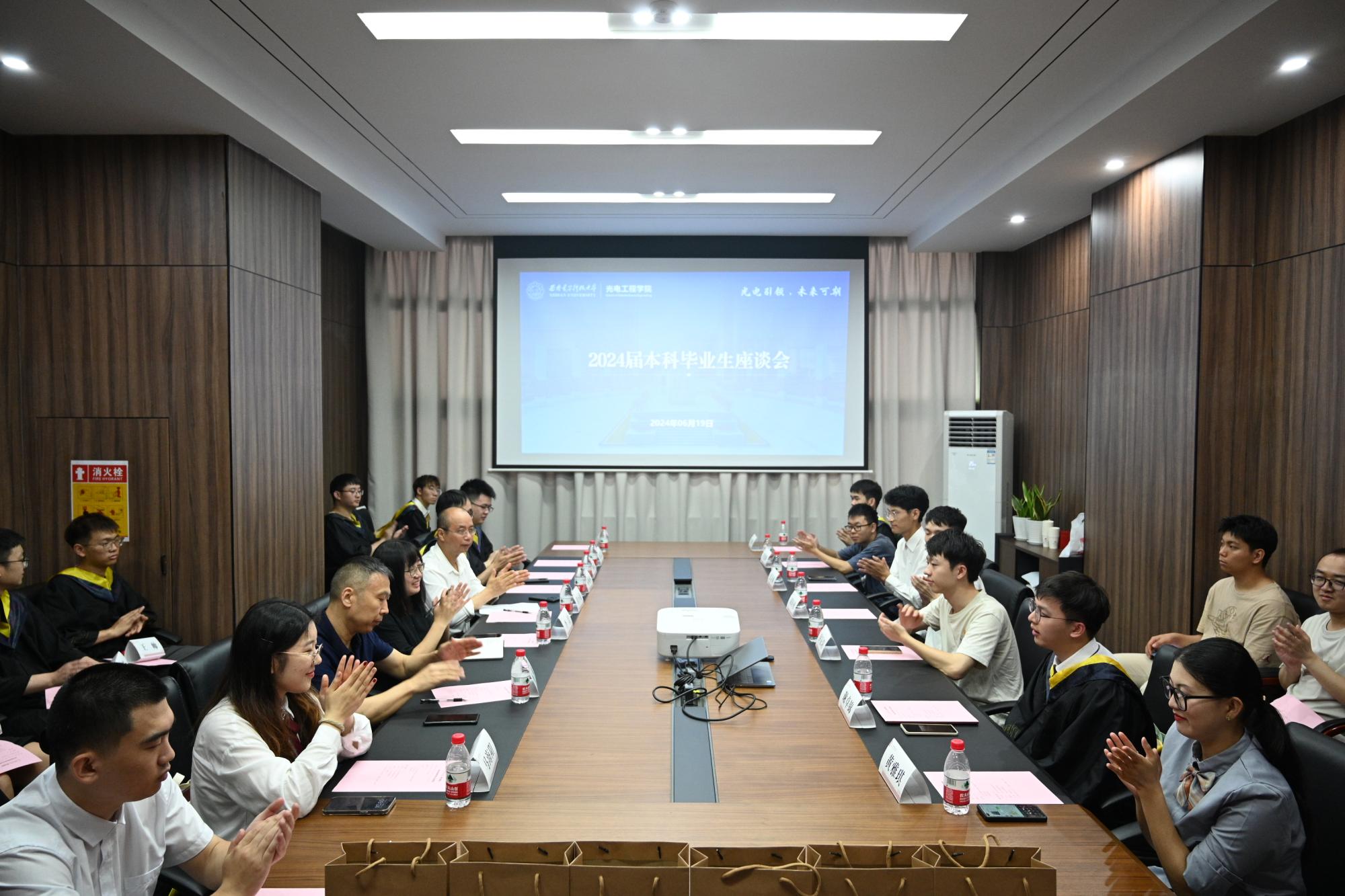 于6月19日上午在南校区E-1-105会议室召开2024届本科毕业生座谈会。学院副处级组织员黄小强、光电技术实验中心主任杨威与2024届电子科学与技术专业、光电信息科学与工程专业30余名毕业生代表座谈交流。座谈会由学院党委副书记李洁主持。