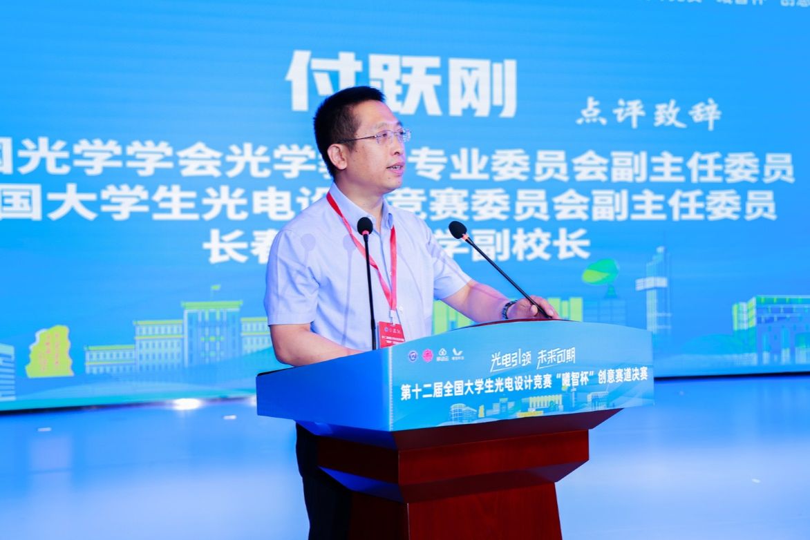 最后,中国光学学会光学教育专业委员会副主任委员、全国大学生光电设计竞赛委员会副主任委员、长春理工大学副校长付跃刚做竞赛点评并总结讲话,他表示本次赛事的成功举办离不开西安电子科技大学严密周到的组织保障工作,进一步推动了全国大学生光电设计竞赛在全国的影响力和示范性,他代表全国大学生光电设计竞赛委员会向本届大赛的承办单位西安电子科技大学,以及所有为本届大赛付出努力的所有师生和工作人员表达了感谢。