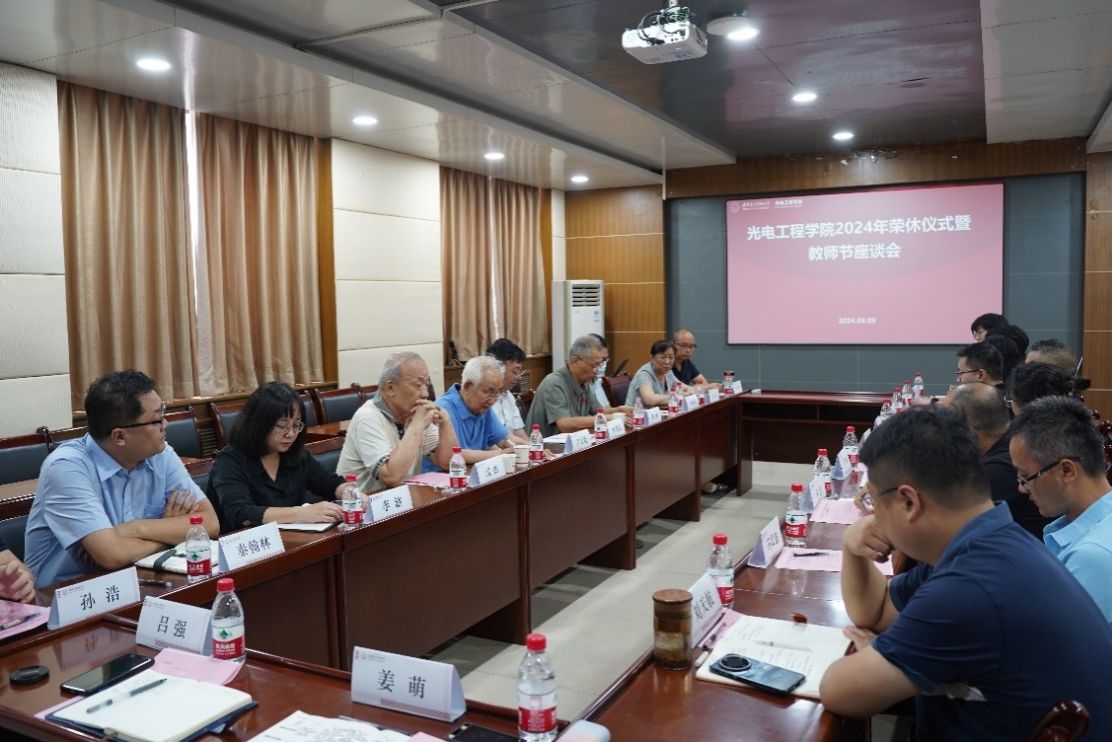 在北校区西大楼三区412会议室举办2024年退休教职工荣休仪式暨教师节座谈会。学院领导班子成员、荣休教师、退休老同志、各系、所(中心)负责人、新入职教师及办公室人员等参加活动。副院长辛红主持活动。