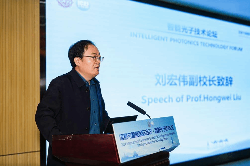 的历史沿革与学科发展,向长期以来支持学校与学院建设的专家学者表示感谢。他表示,多年来,学校致力立足于学术与科技的“最前线”,引导和支持创新要素向基础前沿和核心关键技术汇聚,努力打造支撑电子与信息领域科技创新体系,取得了诸多标志性成果,希望本次论坛为各位专家学者搭建起多元、开放、创新的共享平台,在新思想的交流和新技术的切磋中碰撞出促进光学与光子学技术新发展的智慧火花。