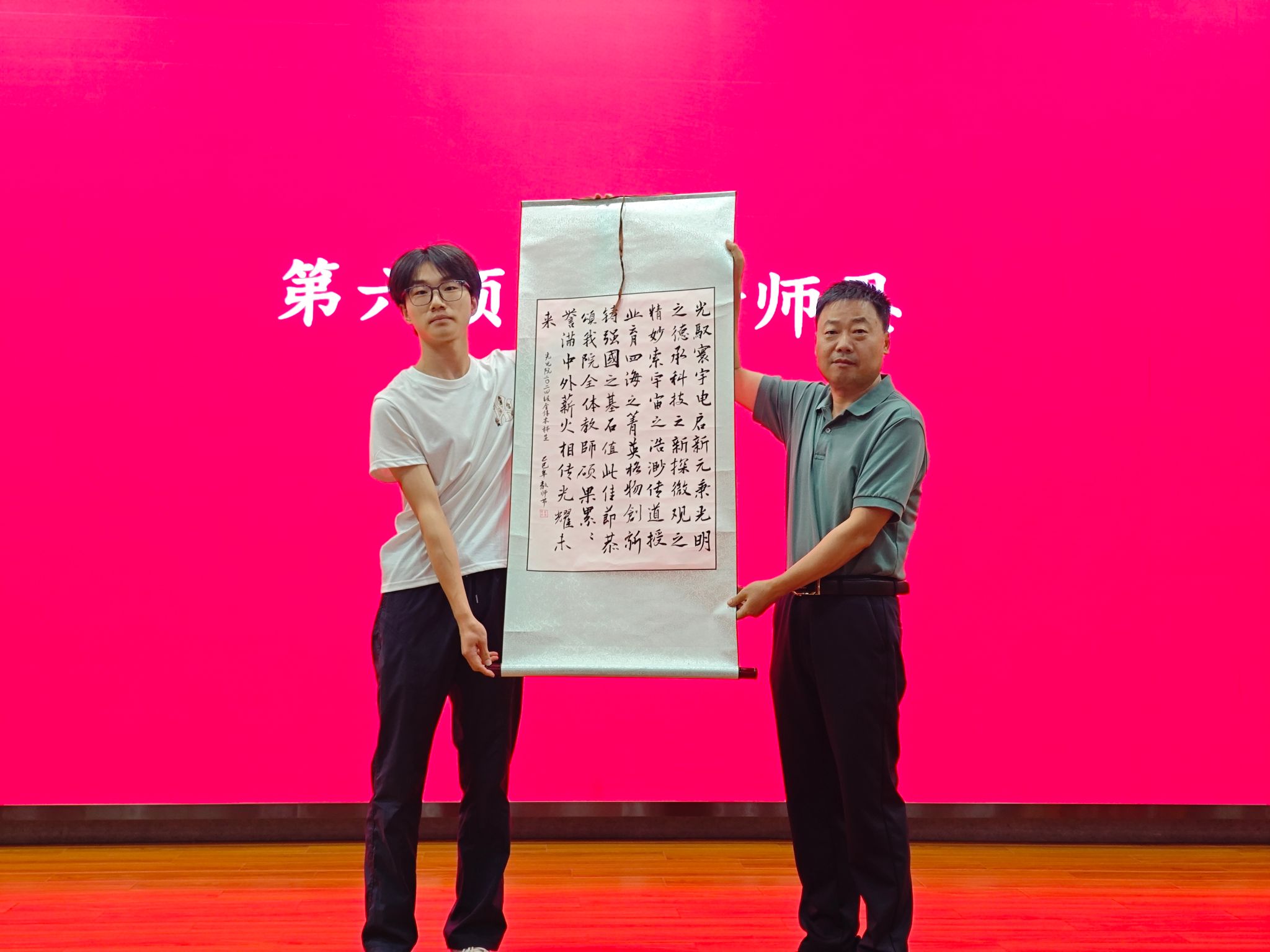 9月10日恰逢第41个教师节,2024级同学们也精心准备了节日祝福:12位学生代表为与会教师送上手写教师节贺卡,字里行间饱含对师恩的敬意。光电信息科学与工程专业的牟思同、秦玺朝等同学为学院创作了诗词作品,独国社书记与在场师生共同见证这份“追光者与燃灯人”的双向奔赴。