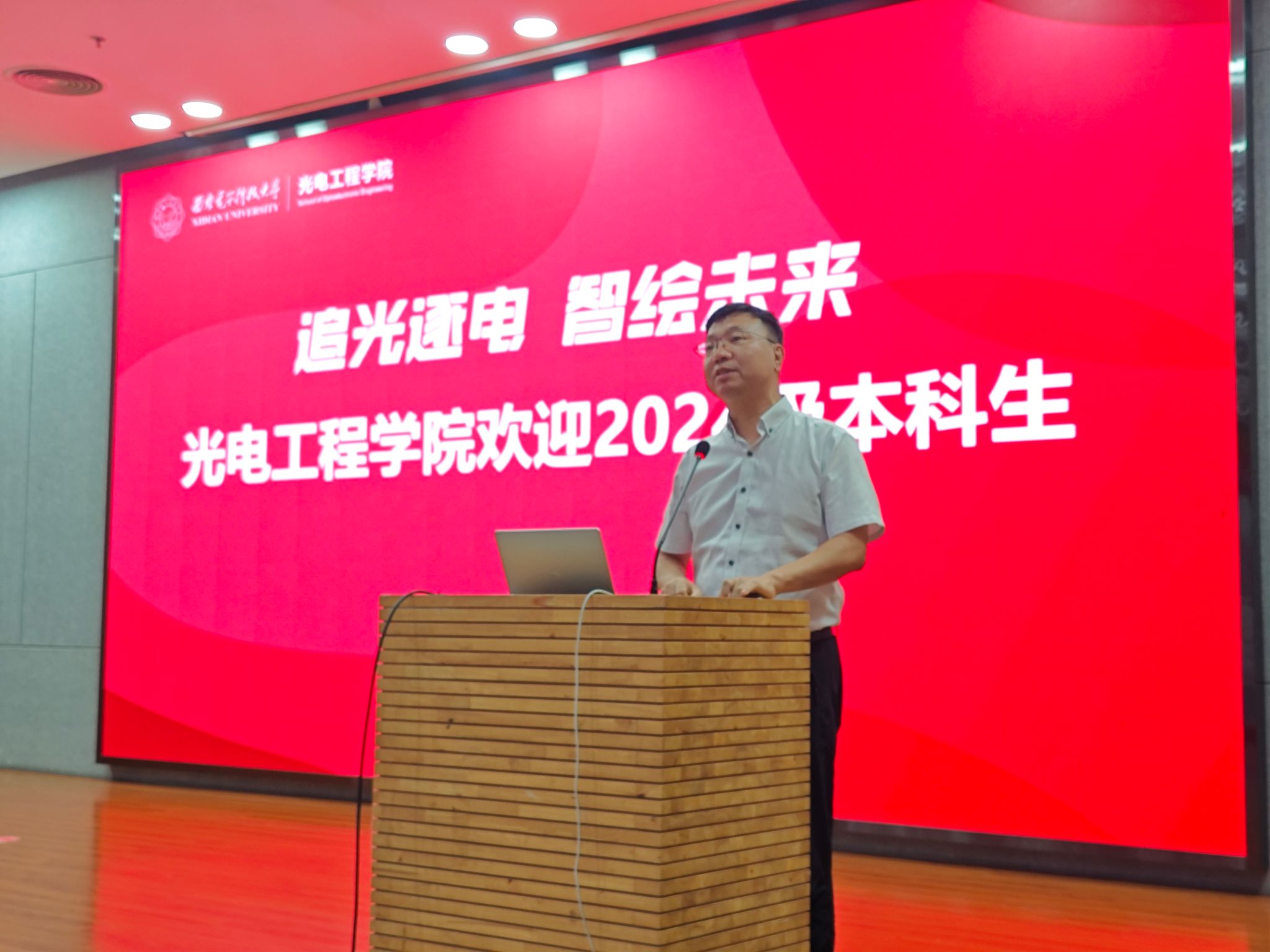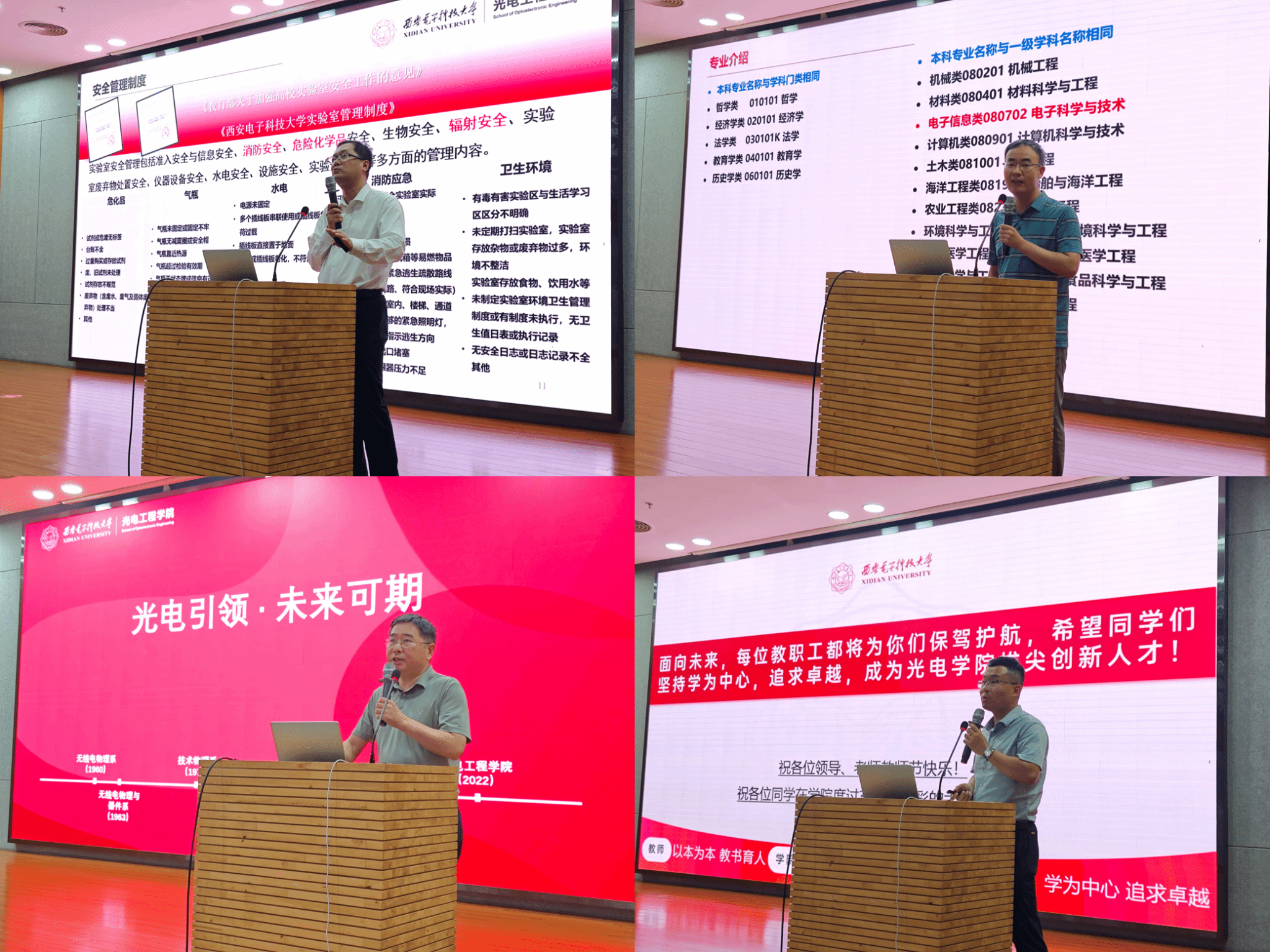 副院长秦翰林围绕学术诚信、实验室安全及保密工作进行专题教育。他强调,学术规范与安全意识是科研与学习的基石,叮嘱同学们严守学术底线、筑牢安全防线、远离保密红线。电子科学与技术专业负责人刘德连教授、光电信息科学与工程专业负责人王晓蕊教授分别对专业培养方案进行细致解读,从课程体系、实践环节到发展前景等方面为同学们清晰勾勒出专业学习的“路线图”。教育教学办公室主任吕强解读了本科教学工作政策与指南,要求同学们加强学风考风建设,争做新时代拔尖创新人才。