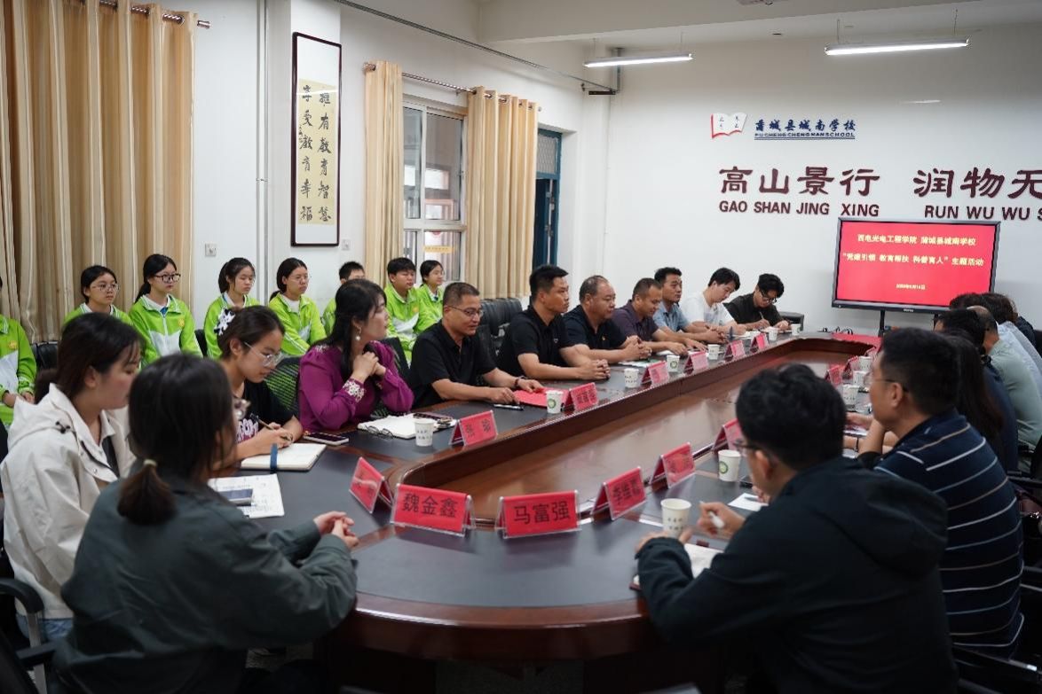 上午,学院一行来到蒲城县城南学校开展帮扶,蒲城县委常委、副县长田雨(西电派出挂职干部)、教育局乡村振兴办主任曹新建、城南学校领导班子及西电研究生支教团成员参加座谈,会议由城南学校党支部副书记魏立平主持。学校党支部副书记、校长崔富强代表全校师生致欢迎辞,对WG体育