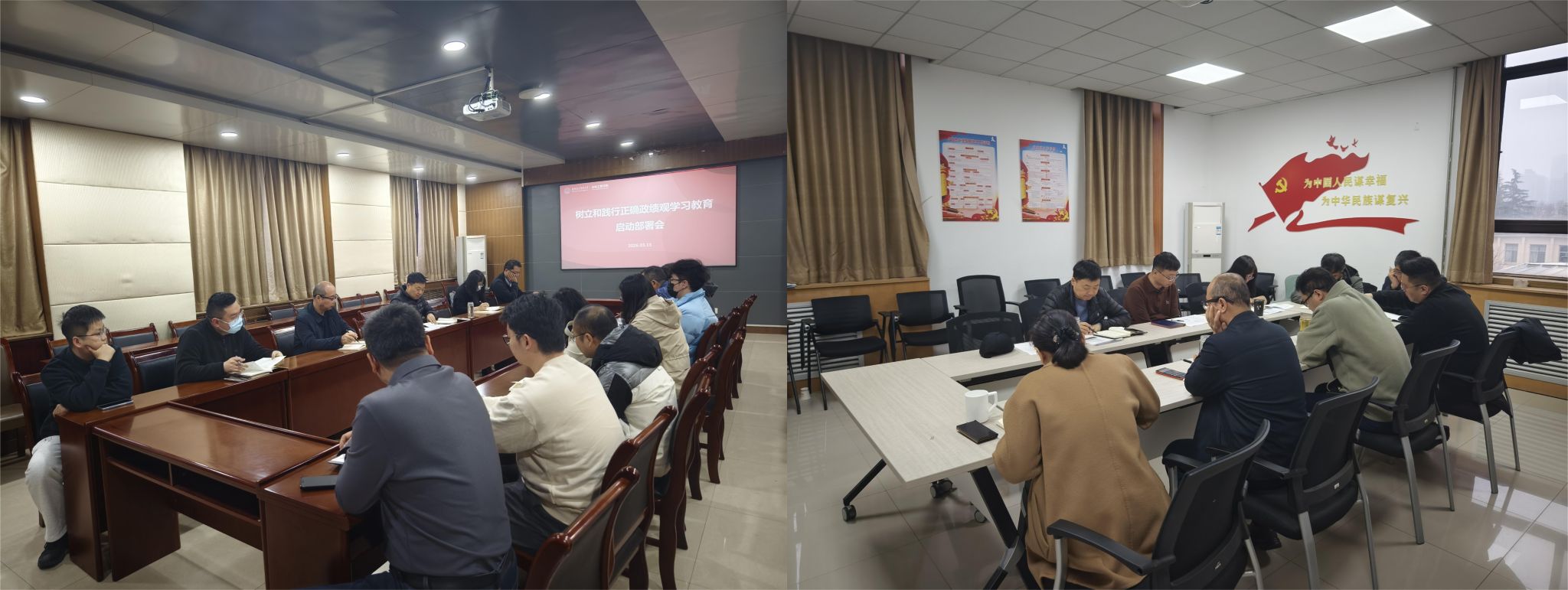 党委扎实开展树立和践行正确政绩观学习教育,深入学习贯彻习近平总书记关于树立和践行正确政绩观的重要论述,认真落实学校党委部署要求,于3月至4月举办学院领导班子学习教育读书班,原原本本学原文、悟原理,交流读书心得、分享学习体会,以上率下推动学习教育走深走实。