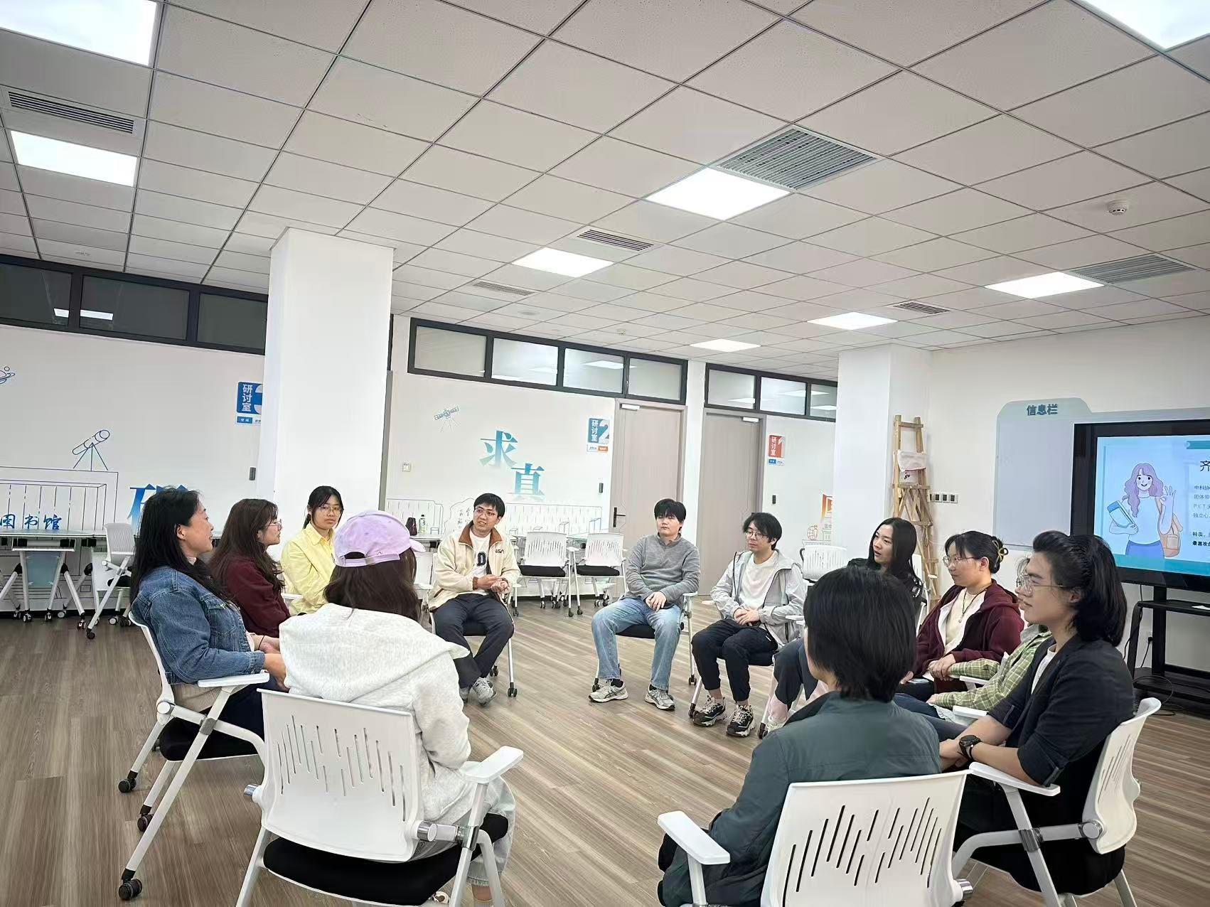 在雁塔校区会议中心103研学空间举办以“自我探索,建立良好人际关系”为主题的“研途知心”心理健康团体辅导活动。活动邀请中国科协心理应急志愿者服务队齐静老师担任主讲老师,学院10余名研究生参与活动。