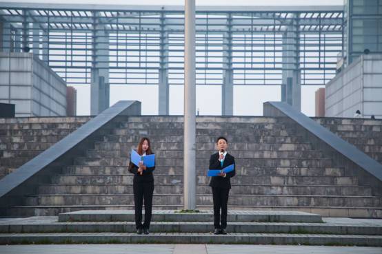 国旗升起后,学生代表在国旗下进行了以《新时代的西电人》为主题的朗诵,他们的声音回荡在广场,时而激情澎湃,时而娓娓动听,如一曲大型交响乐萦绕耳畔。悠久的旋律将同学们带回半部电台起家的红色岁月,诉说着那段波澜壮阔的历史背后数不尽的辛酸。激情洋溢的诗朗诵带领着同学们遍观祖国近年来的发展历程,自豪之情溢满每个人的心头。有志青年求实创新,红色历史薪火相传,西电,就是永恒的丰碑。