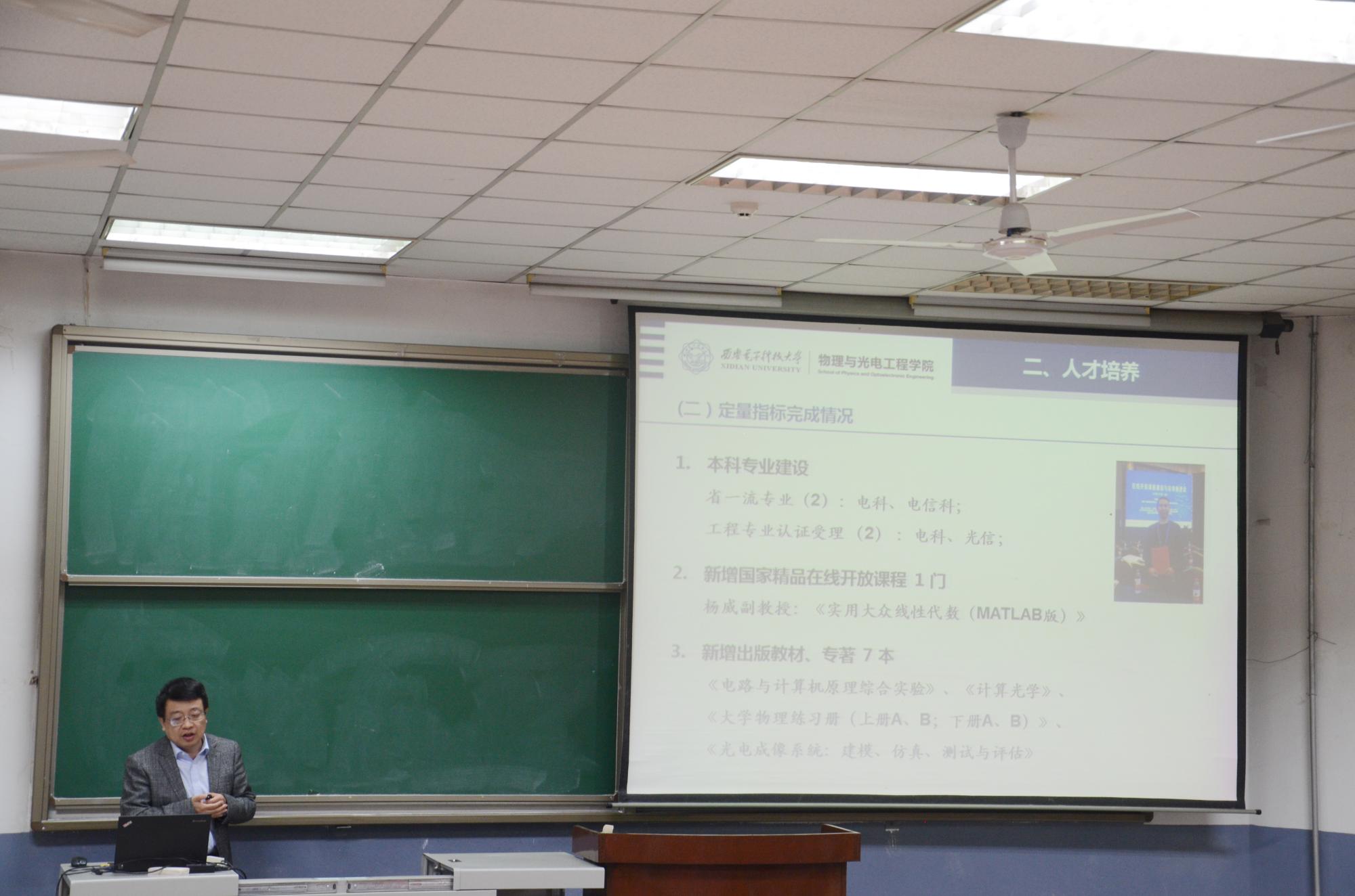 学院执行院长郭立新从2017年度工作回顾、工作分析及思考、2018年工作目标三个方面对学院工作做了报告。在报告中他谈到,2017年是不平凡的一年,学院在党建思政、人才培养、学科建设、队伍建设等方面取得了长足的进步,基本完成了学校布置的工作任务。但通过定性定量分析,学院仍存在着招生工作吸引力不足,整体教学、科研业绩分布失衡,系、所、中心贡献不均等问题,并从各方面分析了造成问题的主要原因。在提及2018年工作目标时,他结合本科教学、研究生教育、科学研究、学科建设、队伍建设、国际化、学生工作、财务八个方面向全体教师提出希冀,希望全体教职工在新的一年里不忘初心、鼓足干劲、脚踏实地,为学院全年目标的实现贡献力量。