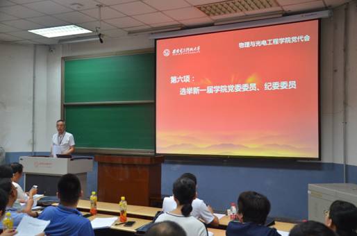 大会选举弓树宏、代少玉、朱江峰、杨光暐、吴兴林、张建奇、邵晓鹏、林波、秦翰林、聂丁、韩一平(女)(按姓氏笔画为序),11名同志为新一届中共西安电子科技大学物理与WG体育