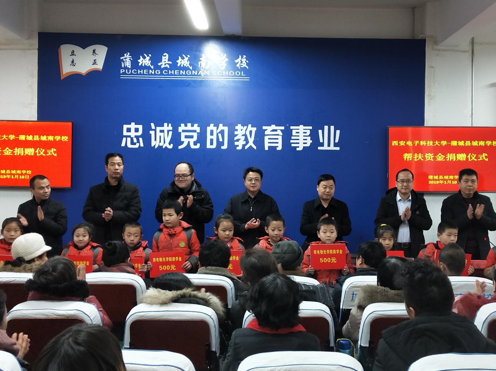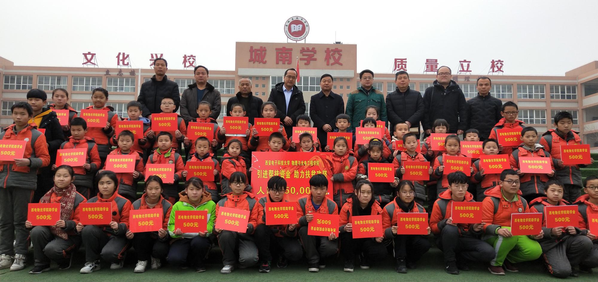 大学生实践基地”,援建“西电物光院-蒲城城南学校学生科技活动室”,并邀请城南学校师生来我校参观交流。本次学院发挥校友企业与合作单位资源优势,与西安中科洺光测控技术有限公司、洛阳长峰电子科技有限公司签署协议,引进5万元帮扶资金,用于设立“2018年西安电子科技大学—蒲城县城南学校贫困生‘物光助学金’”和帮助改善城南学校基础教育设施。城南学校要用好帮扶资金,为学生提供更加优质的教育服务,使受助学生能够不受经济困难束缚,早日成长为祖国的栋梁之才。希望同学们铭记社会各界的深情关爱,正视并战胜困难,不负家庭和社会的厚望,把关爱化为奋发学习的动力,坚定信心,自强不息,刻苦学习,提高素质,练好本领,努力成为对国家、对社会有所作为、有所贡献的人才,以优异的成绩和将来的出色表现,报效祖国,回报社会。