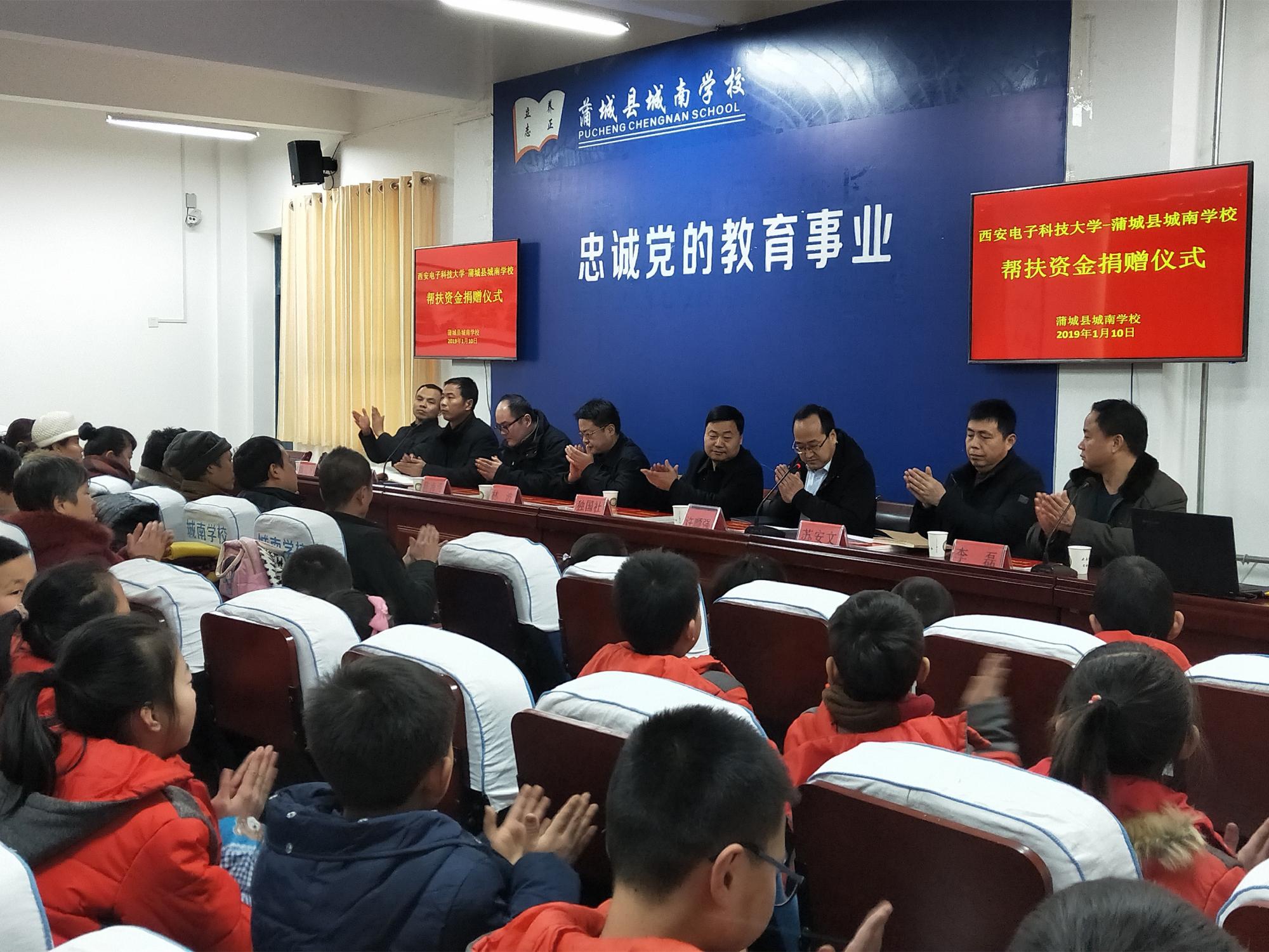 首期帮扶资金捐赠仪式在蒲城县城南学校二楼会议室举行。物理与WG体育