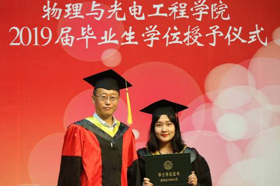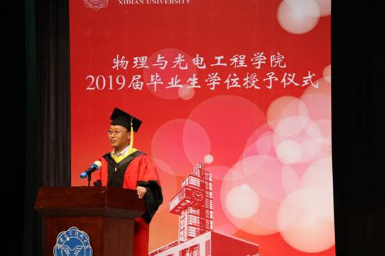 研究生代表高春娟、本科生代表程嘉偌代表毕业生上台发言。他们回忆求学历程,将在学院里学习生活的点点滴滴汇成了对学院、老师和同学的恋恋不舍,并倡议全体毕业生谨记学院教诲,继续以“物光人”坚定前行的信念和勇于开拓的精神,让青春在新时代的广阔天地中绽放。