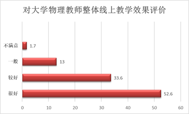 有86.2%的学院大一学生认为大学物理教师整体线上教学效果比较好,有78.5%的学生感觉自己可以跟上老师的授课思路。这说明大学物理网络授课在大一学生群体中取得了较大的认可。