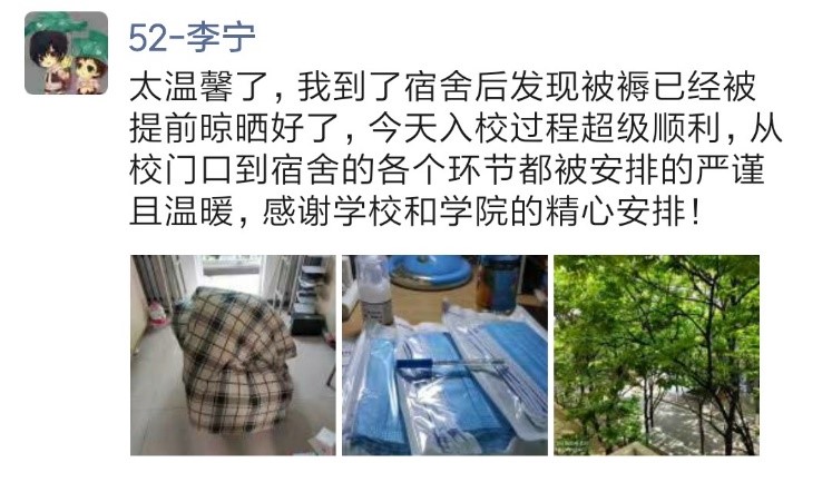 (通讯员 田宪)“太温馨了,我到了宿舍后发现被褥已经被提前晾晒好了,今天入校过程超级顺利,从校门口到宿舍的各个环节都被安排的严谨且温暖,感谢学校和学院的精心安排!”16级电子信息科学与技术专业学生李宁在入校后第一时间在朋友圈分享了自己的感受。