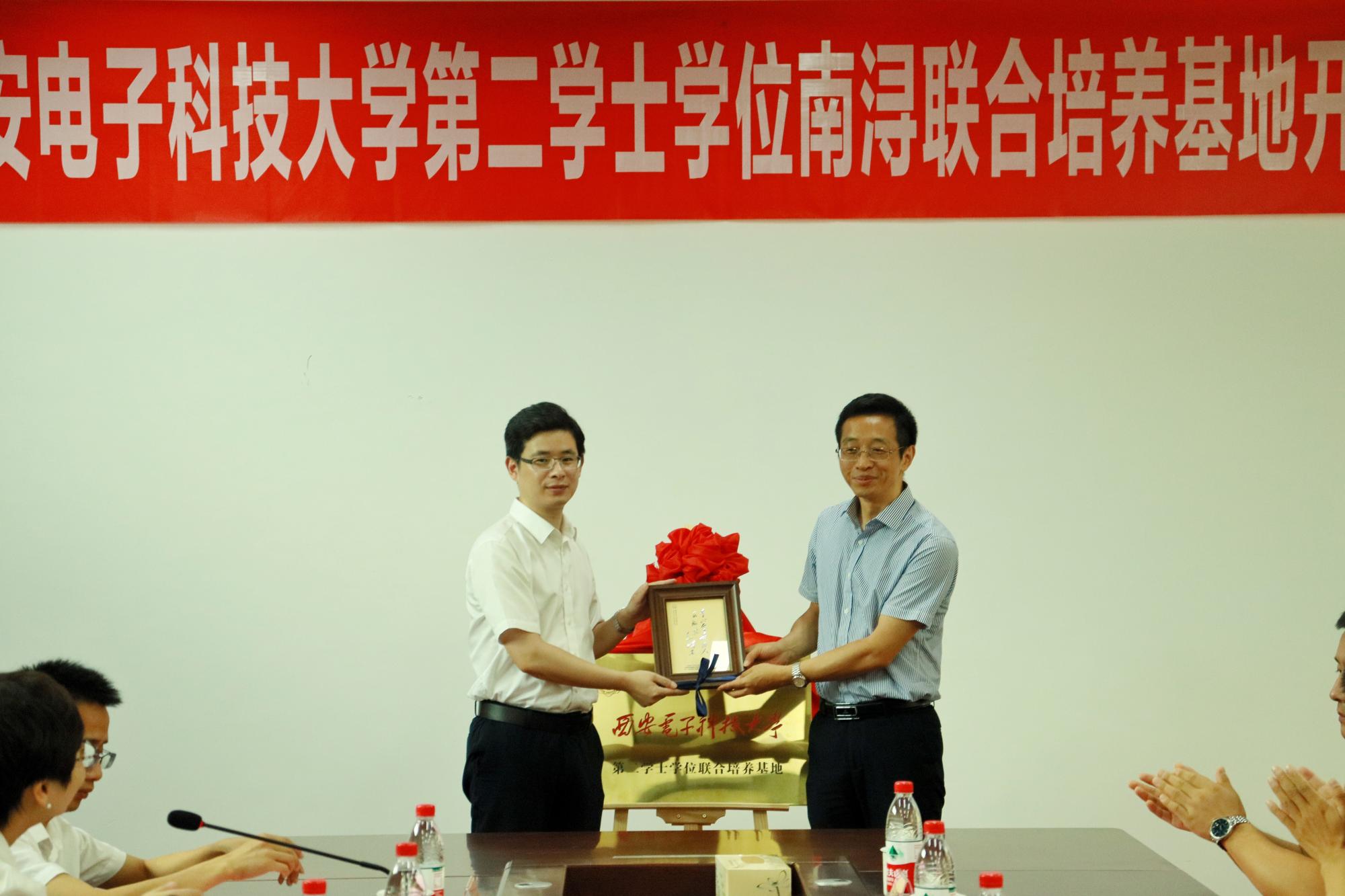 最后,周慧鑫和陈伟共同为“西安电子科技大学第二学士学位南浔联合培养基地”揭牌,并向区委赠送了学校纪念品,全体参会代表合影留念。仪式结束后,专任教师李仁先、马英为同学们做了“专业技术交流”报告,反响热烈。