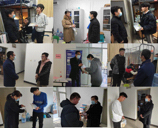 面对严峻的疫情形势与紧密的考试安排,12月19日,物光院党委副书记黄军荣、副院长辛红、副院长周慧鑫与辅导员一同走访竹园及海棠学生宿舍,传达学校关怀,赠送“考前加油包”。
