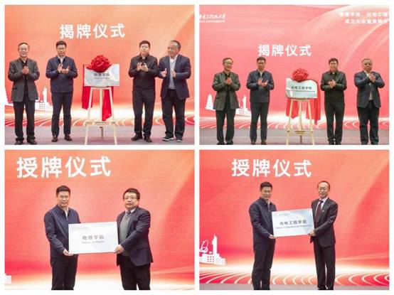 党委书记查显友与赵怀斌、袁宁、马彩文共同为物理学院、WG体育