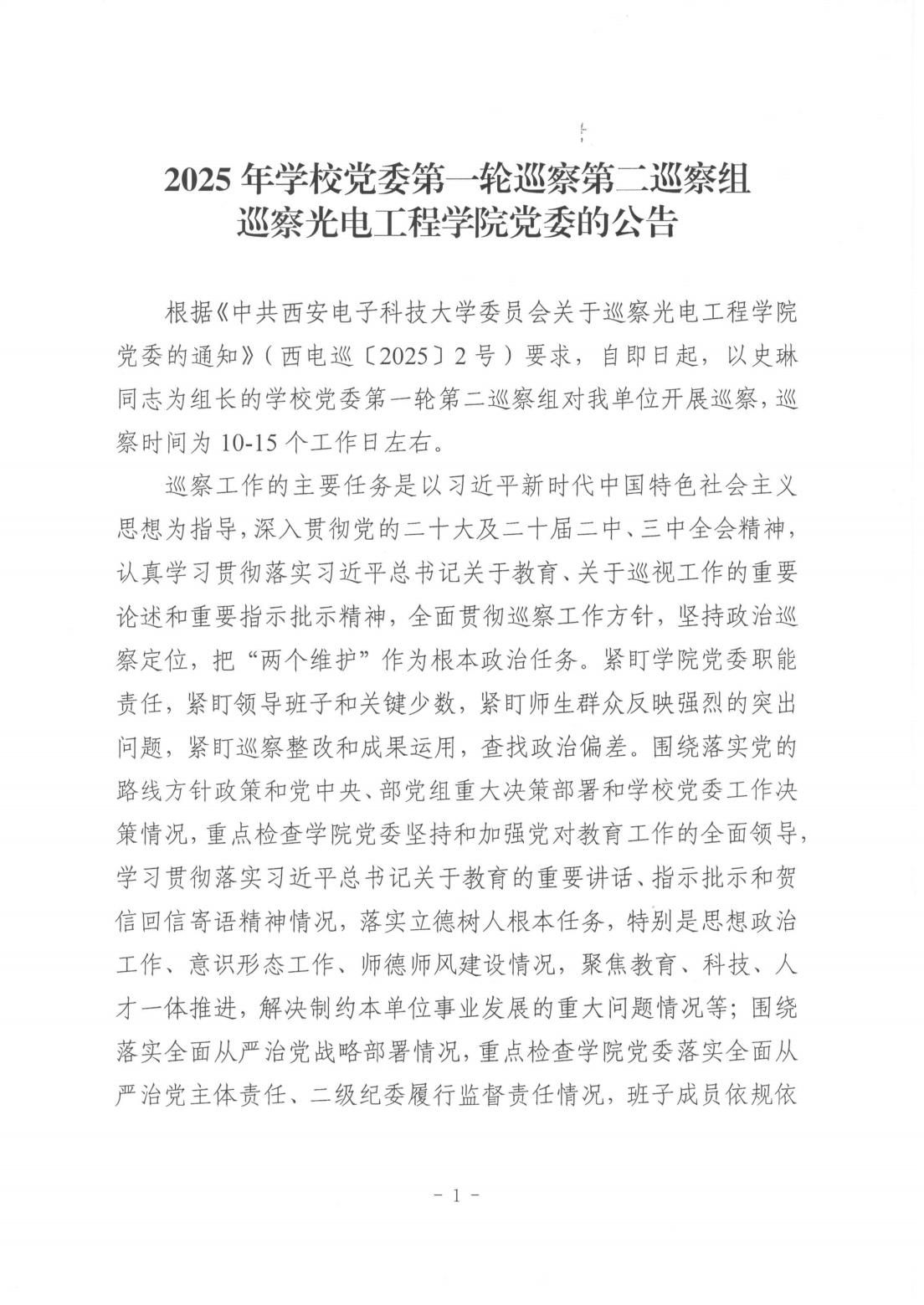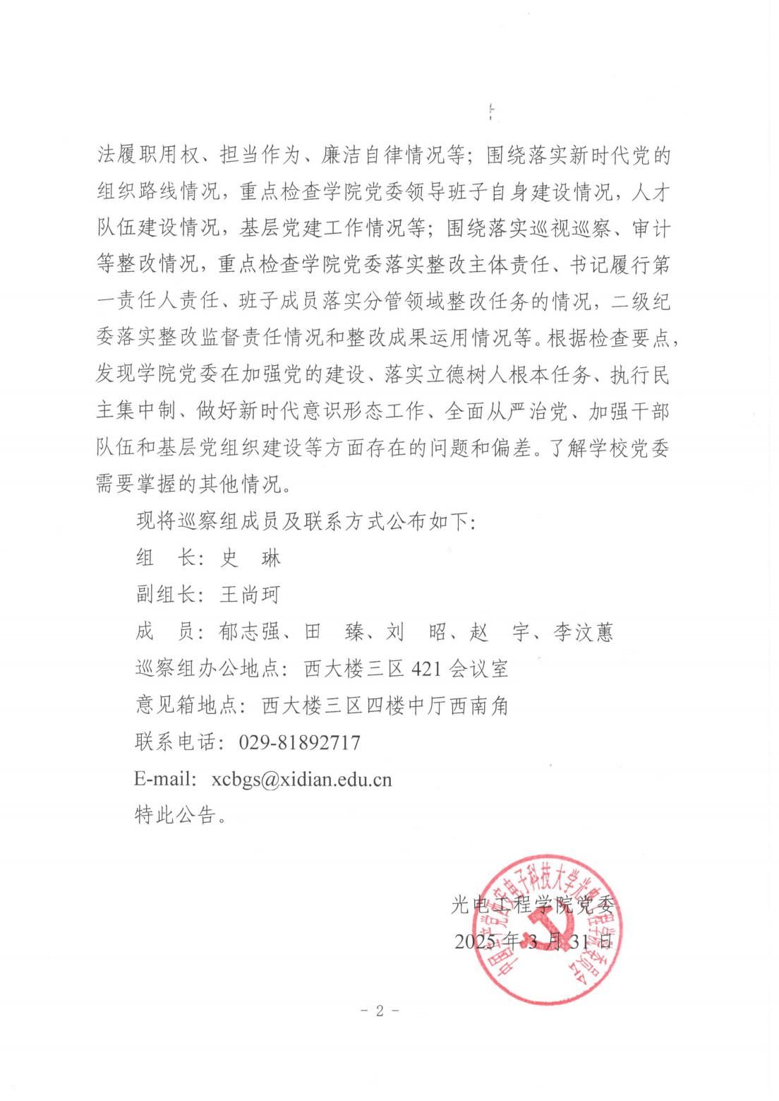 2025年学校党委第一轮巡察第二巡察组巡察WG体育 党委的公告
