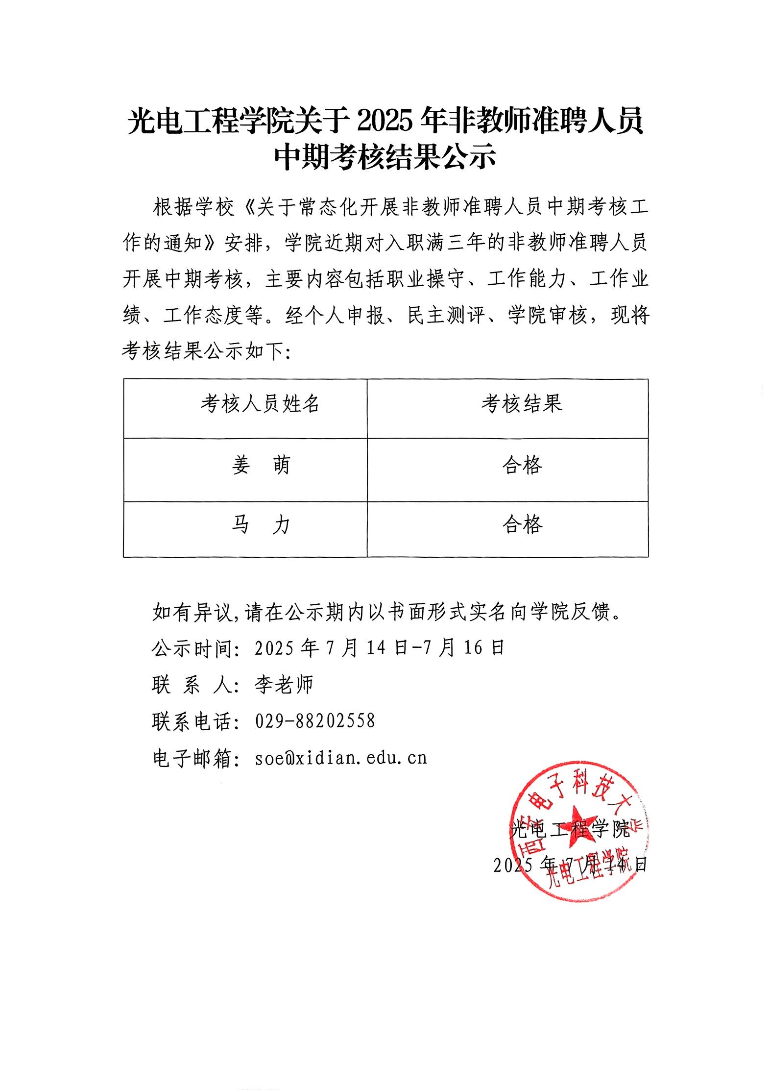 WG体育 关于2025年非教师准聘人员中期考核结果公示