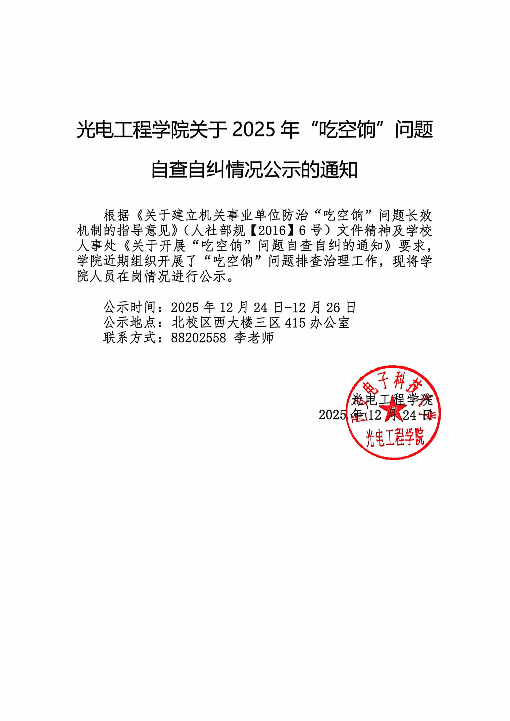 WG体育 关于2025年“吃空饷”问题自查自纠情况公示的通知