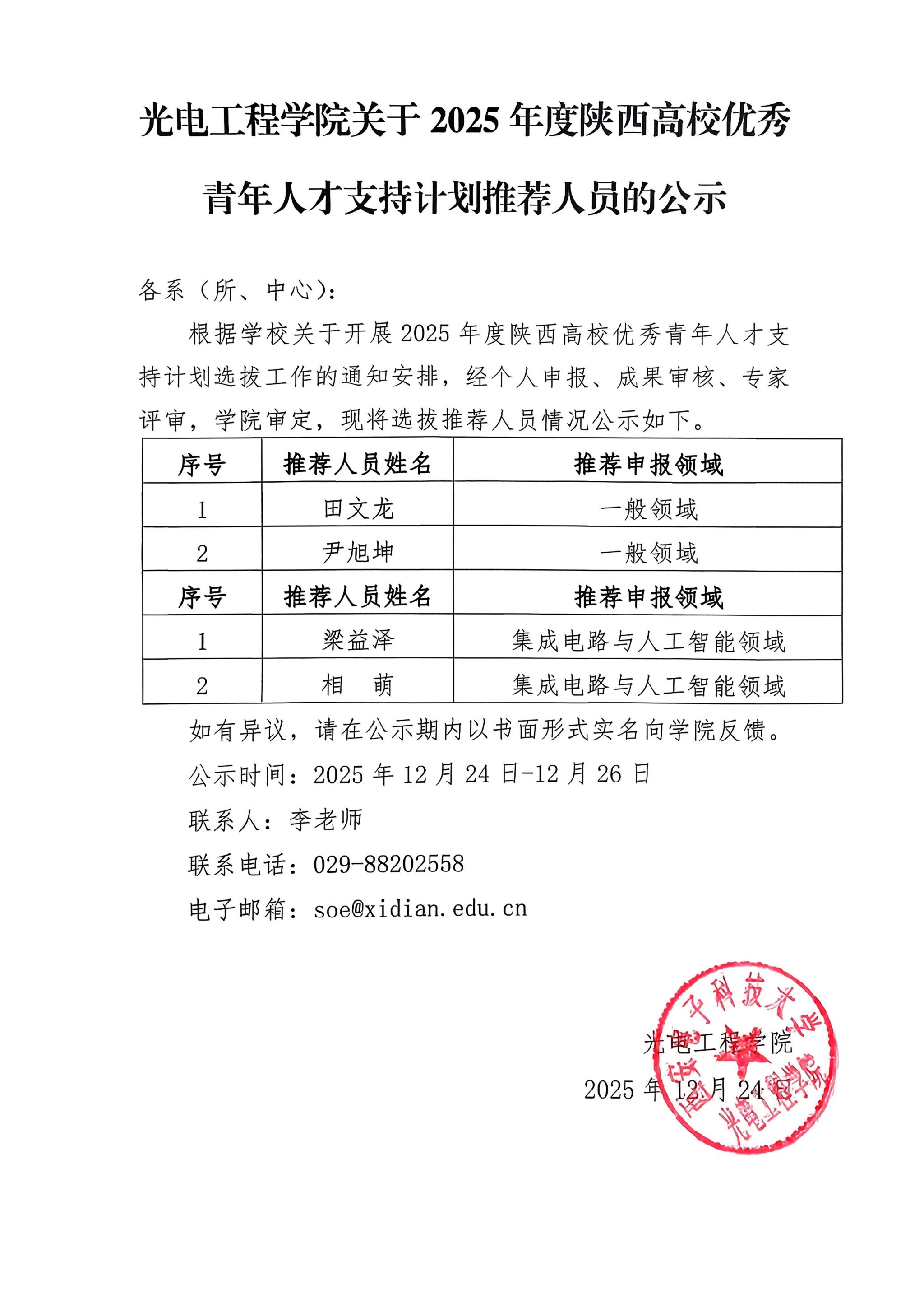 WG体育 关于2025年度陕西高校优秀青年人才支持计划推荐人员的公示