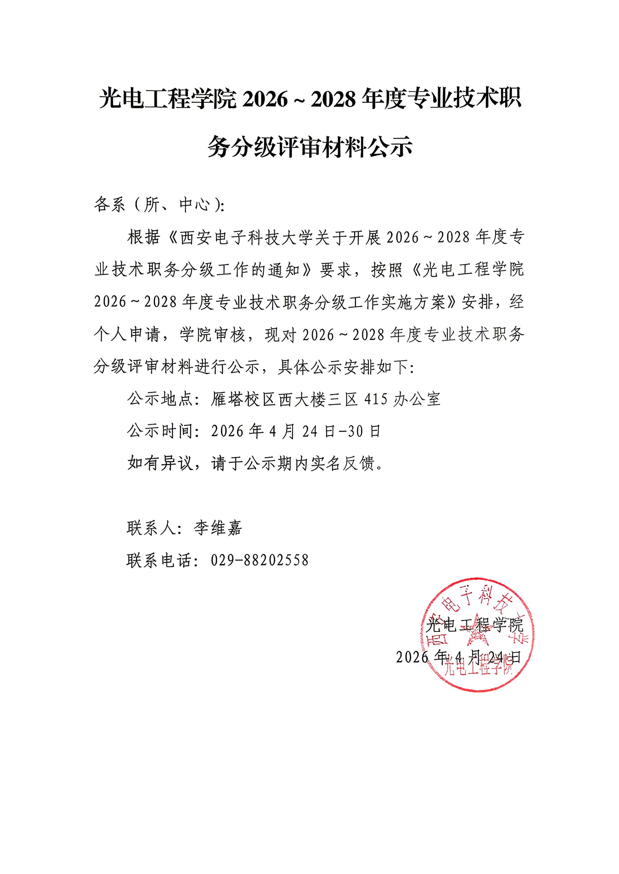 WG体育 2026~2028年度专业技术职务分级评审材料公示