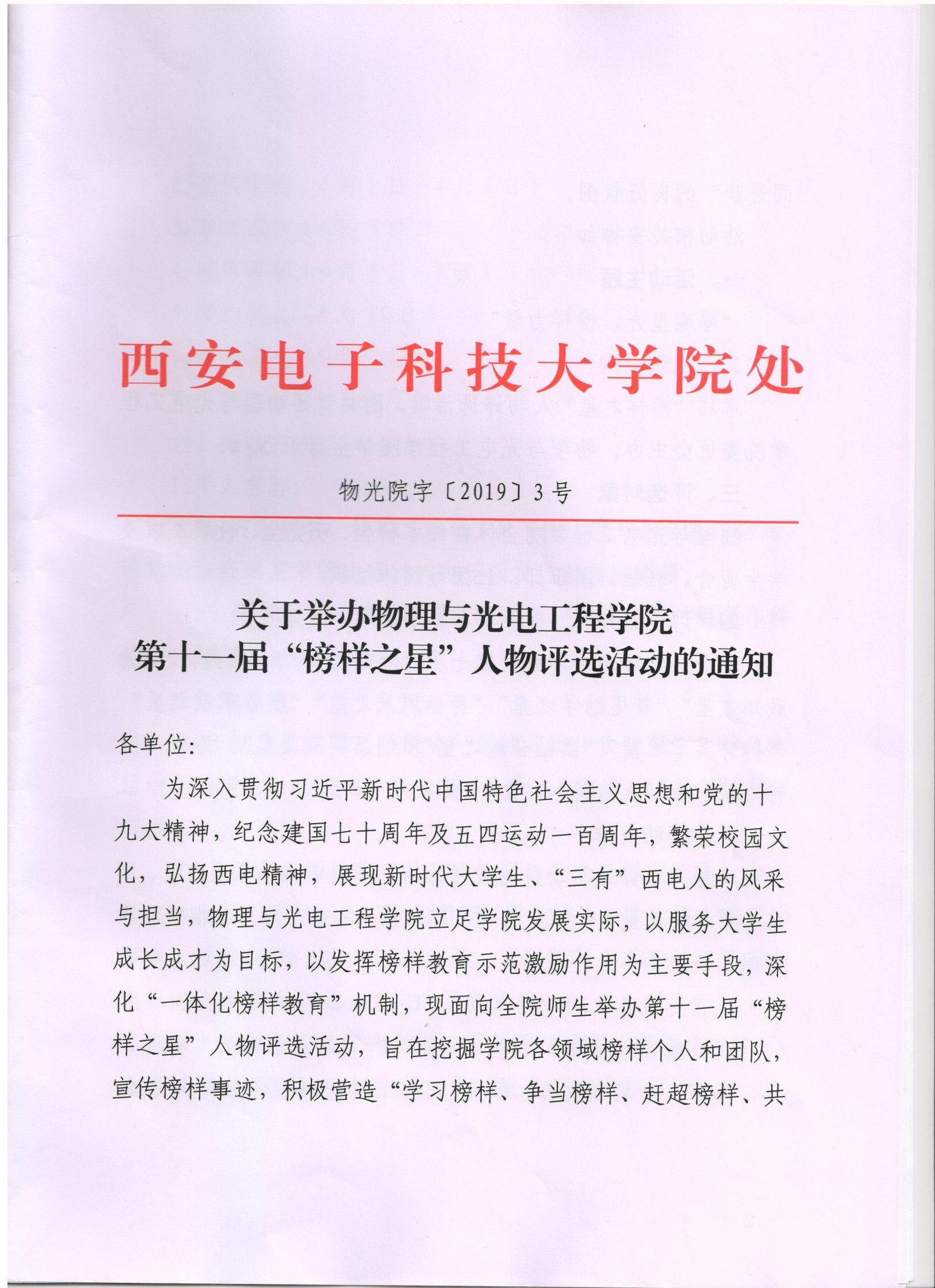 关于举办物理与WG体育 第十一届“榜样之星”人物评选活动的通知