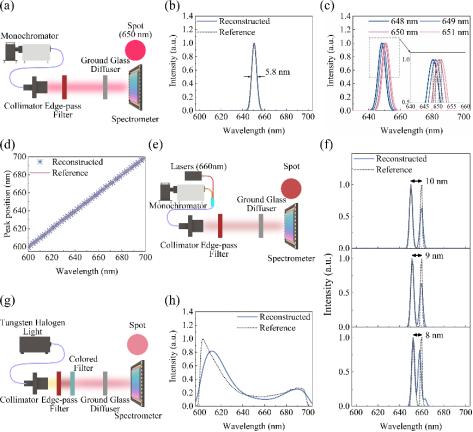 该研究提出基于金纳米棒-聚乙烯吡咯烷酮薄膜的重建型光谱仪,通过引入光化学重塑技术使用非相干宽带光源单次曝光对薄膜不同区域光谱透射率进行快速定义,从而实现光谱仪滤光结构的低成本快速制造和灵活设计。作者通过实验验证了该重建型光谱仪的光谱测量性能,其在600nm至700nm光谱测量范围内具有较好的窄带和宽带光谱重建效果。研究成果为重建型光谱仪光学滤光器件的设计制造提供了新的思路。
