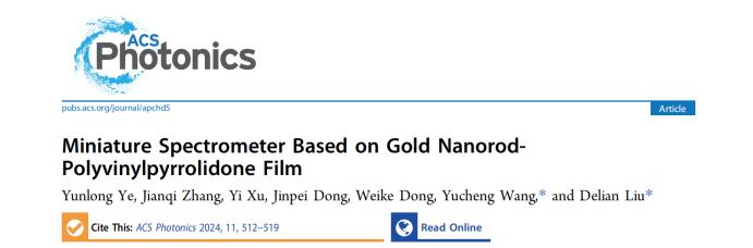 红外物理与工程团队在国际光子学领域权威学术期刊ACS photonics(中国科学院JCR一区,Top期刊)在线发表了题为“Miniature Spectrometer Based on Gold Nanorod-Polyvinylpyrrolidone Film”的最新科研成果。该研究首次提出了基于金纳米棒-聚乙烯吡咯烷酮薄膜的重建型光谱仪,在满足光谱仪微型化发展需求的基础上,实现了简化的器件加工工艺、降低了制造成本,对微型光谱仪的普及具有重要意义。WG体育