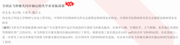 为集中反映近年来我国科研工作者在超快激光非线性光学领域的最新研究成果和研究进展,《中国激光》杂志推出“超快激光非线性光学”专题栏目,特邀我院超快激光技术与应用研究中心综述近年来在飞秒激光同步泵浦的光学参量振荡器研究中的系列进展。相关专题在2019年第46卷第5期上发表。