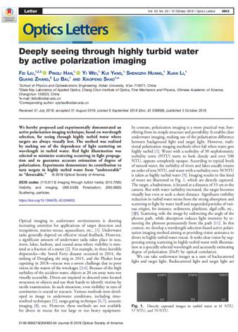 目前,该研究成果已于2018年10月4日正式发表于OSA旗下国际顶级期刊OPTICS LETTERS中,题为“Deeply seeing through highly turbid water by active polarization imaging”(文章链接://www.osapublishing.org/ol/abstract.cfm?uri=ol-43-20-4903,文章附加材料链接://www.osapublishing.org/ol/abstract.cfm?uri=ol-43-20-903#articleSupplMat)。 此外,在2018年OSA Frontier in Optics光学前沿国际会议中,该研究也获得了来自国内外同行的广泛认可。