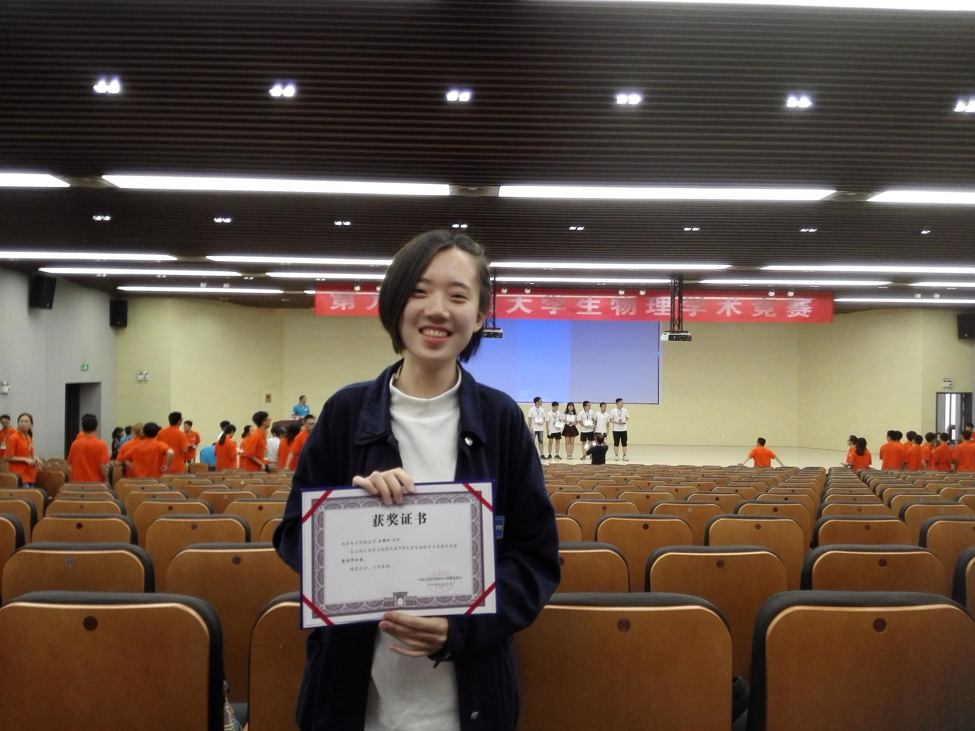 (通讯员:武颖丽)8月15日至20日,第九届中国大学生物理学术竞赛(CUPT)在山西太原举行,本届大赛共有北京大学、清华大学、南开大学、西安交通大学等61所高校参赛。经过与中国科技大学、哈尔滨工业大学等著名高校5轮同台竞技,我校代表队获得团体三等奖、王修竹同学获最佳评论方奖。