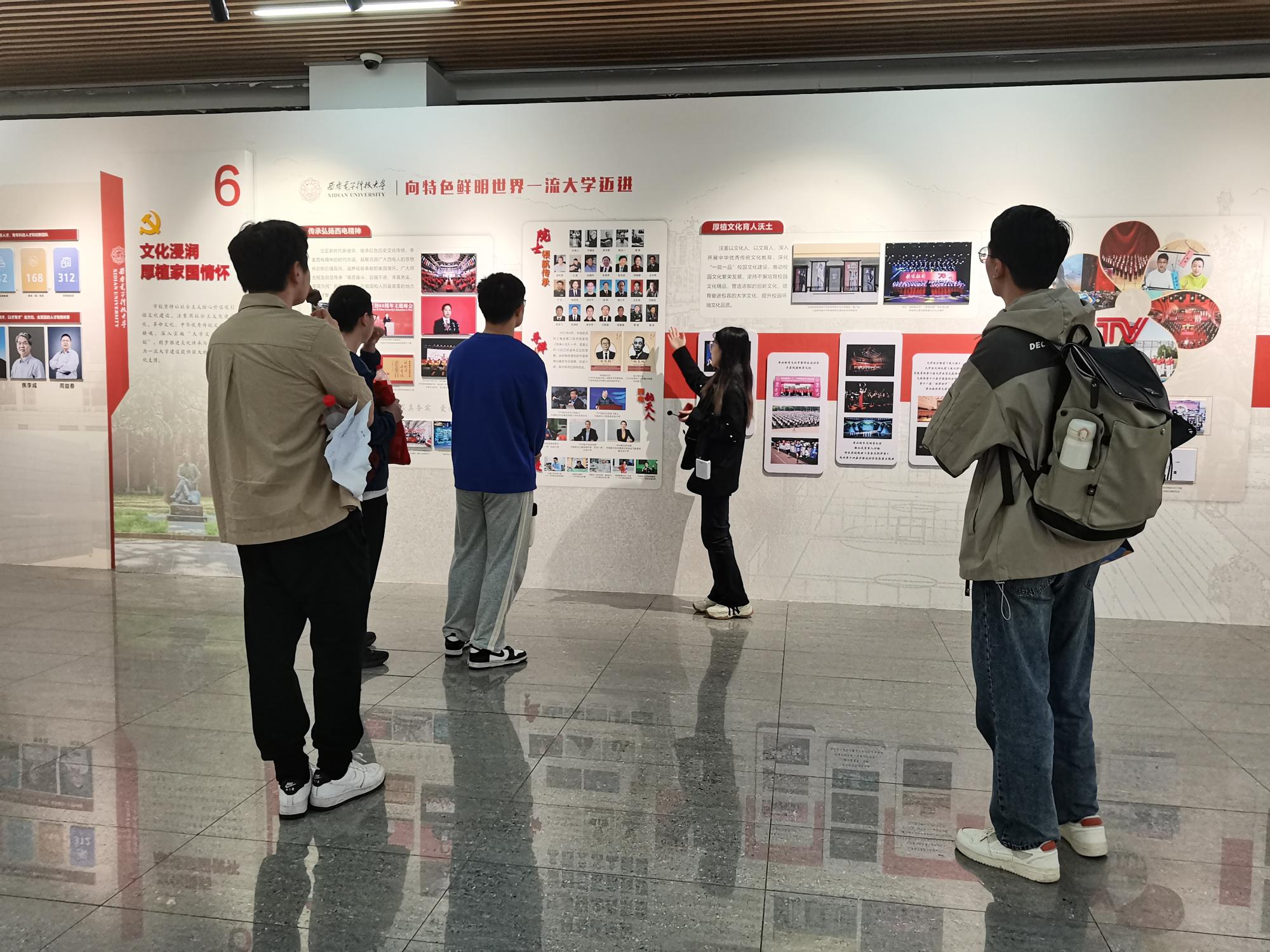 最后,同学们来到南校区图书馆一楼文化长廊“向特色鲜明世界一流大学迈进—西安电子科技大学‘见证者五年’主题展”,参观了“党建引领,铸就坚强保证”“立德树人,培育时代新人”“强基固本,提高培养质量”“四个面向,服务国之大者”等九个篇章,学习了解了十二次党代会以来学校发展历程中极不平凡的五年,感受到了在学校党委的坚强领导下,广大党员师生勇毅前行、锐意进取、推动“双一流”建设取得瞩目成绩的生动实践。