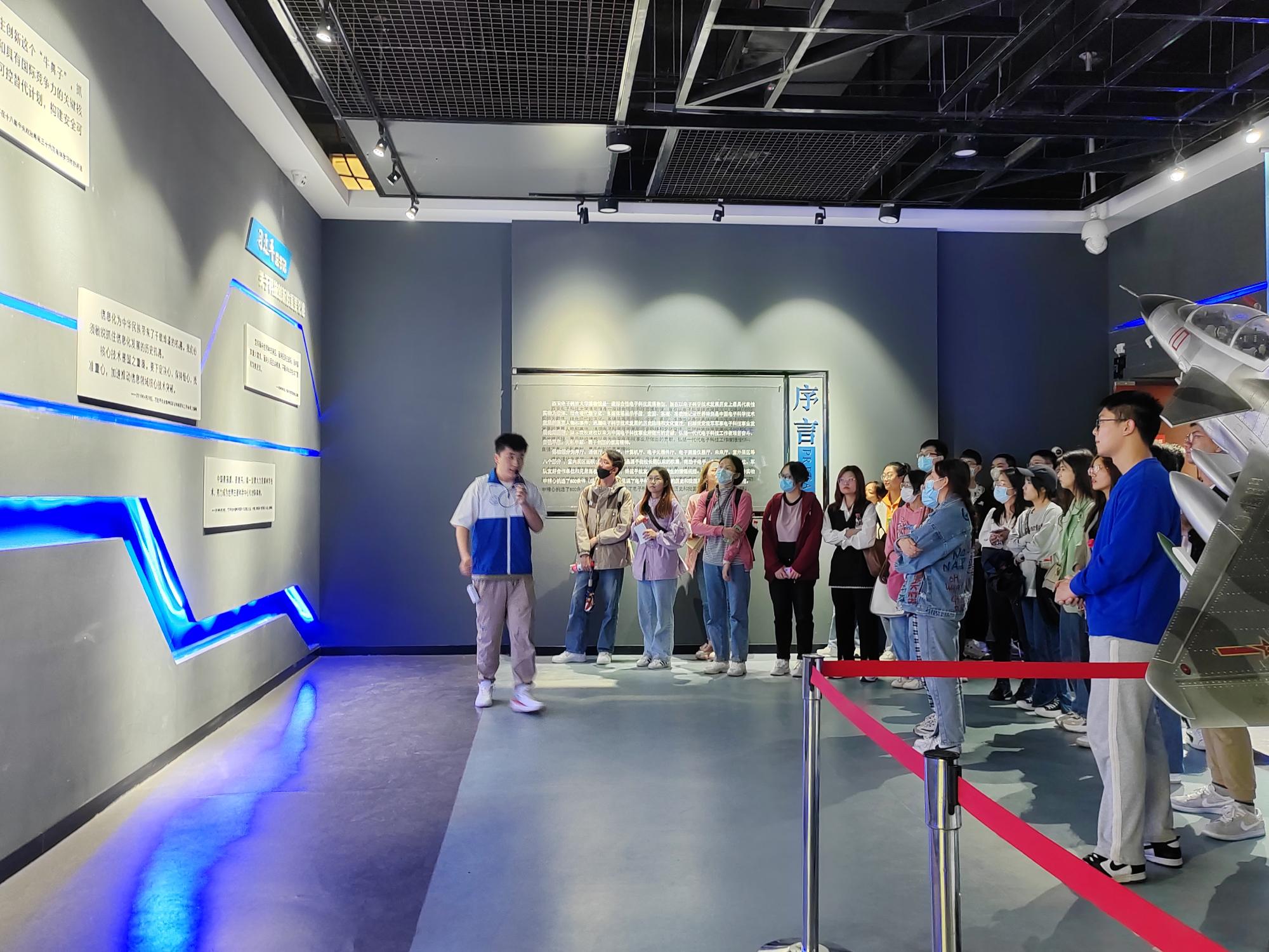 在博物馆,同学们在讲解员的带领下依次参观了分序厅、通信厅、雷达厅、计算机厅等七个部分。同学们认真聆听,有序观看,详细了解了由我校参与研制的世界领先技术流星余迹通信系统、被誉为“中国天眼”的500米口径球面望远镜的零件实物、国内首例空中防撞系统天线等重大科研成果,真切感受到我校建校以来为中国电子科技事业所做出的重要贡献,体会到一代代西电前辈们艰苦奋斗、自强不息、无私奉献、不断探索创新的崇高精神。
